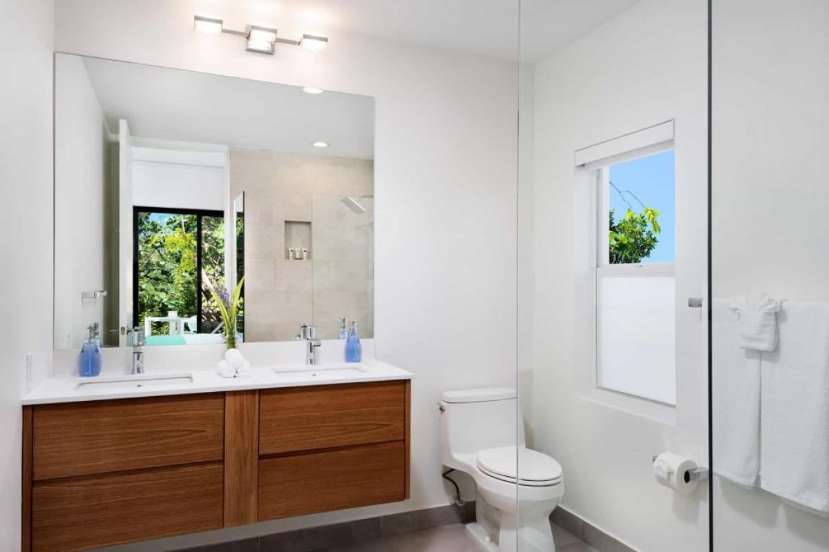 Sandy Shore Villa is not only cooled by the almost constant trade winds, but also has abundant ceiling fans and an individually zoned central air-conditioning system.