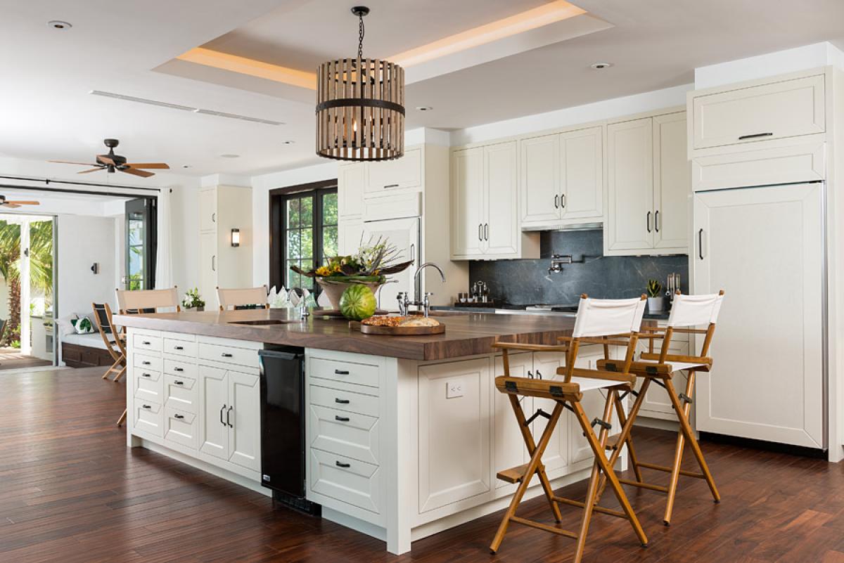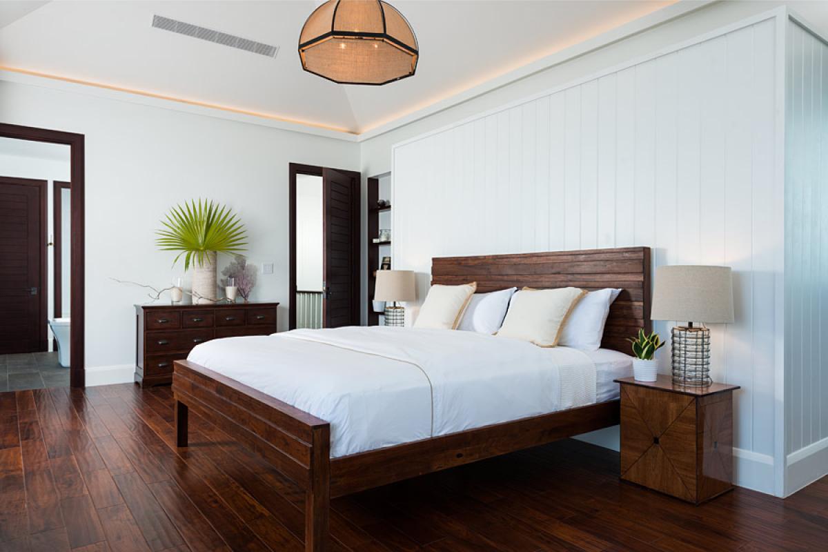 Located in a lush tropical garden, Saving Grace is a lovely 5000+ square foot, two story, L shaped Colonial Style Turks and Caicos villa. Exquisite and understated elegance are the signatures of this warm and soulful Turks and Caicos vacation home. Nestled discreetly into a private sunset-facing cove on one of the top beaches in the world, the use of organic materials and woods complement the modern conveniences of this freshly completed family home. The furnishings are simple but spectacular. A stunning full-service cook’s kitchen is at its heart, where everyone comes together. The 16’ island features two sinks, trash compactor, ice machine, and enough space for large-scale or intimate entertaining. The kitchen and dining table overlook the pool and Grace Bay in its entire splendor, leading to the fully screened-in playroom with movable tables for games and an oversized daybed. Outdoors you will find a 40-foot long heated pool that is surrounded by Brazilian hardwood decking. Palm-framed pathways lead you to private sitting nooks and the soft sand of Grace Bay. A fully equipped watersport hut entices adventure off of its protected and private cove. An outdoor rain shower, fire-pit, lounge and dining areas, state-of-the art bbq are enhanced by spectacular lighting.