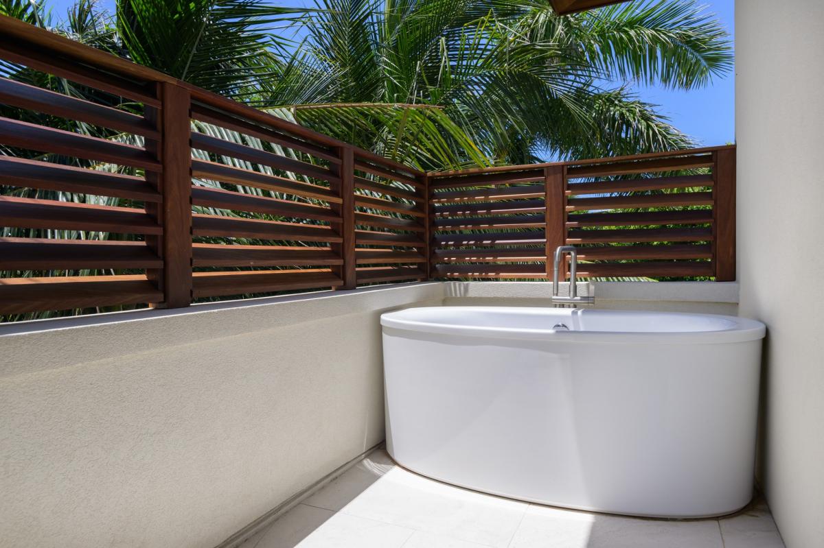 Bedroom 8: King bed, ensuite bathroom, 55" flat screen tv, garden view, seperate AC thermostat control, walk-out door to pool deck