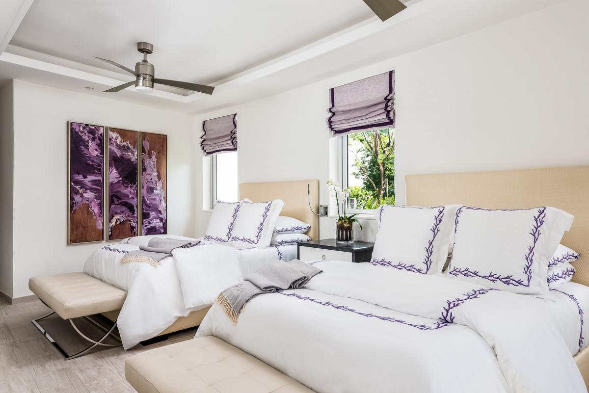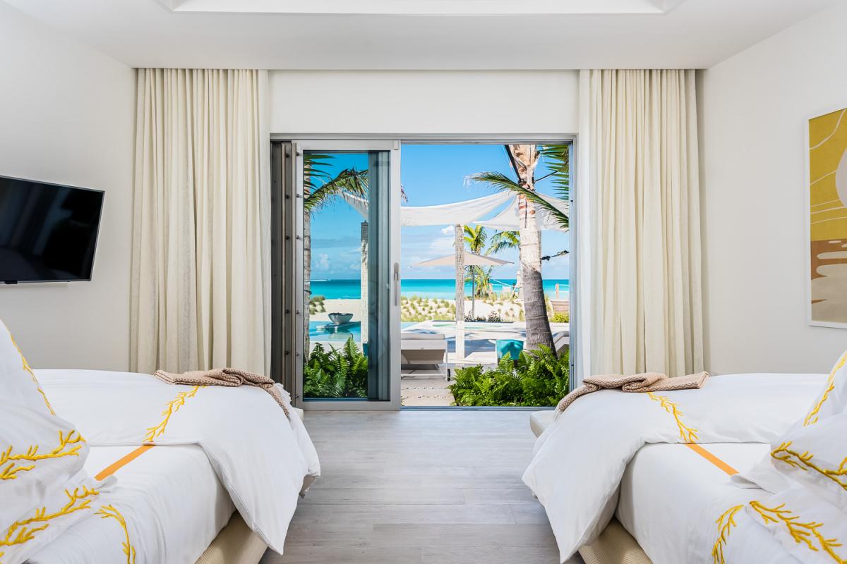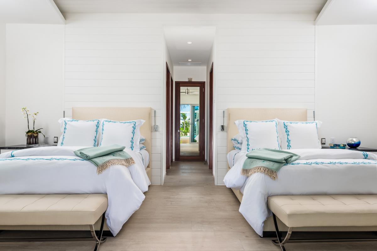 • Bedroom 4: Two double beds, en suite bathroom with shower, walk-in closet, TV, phone, AC, ocean view