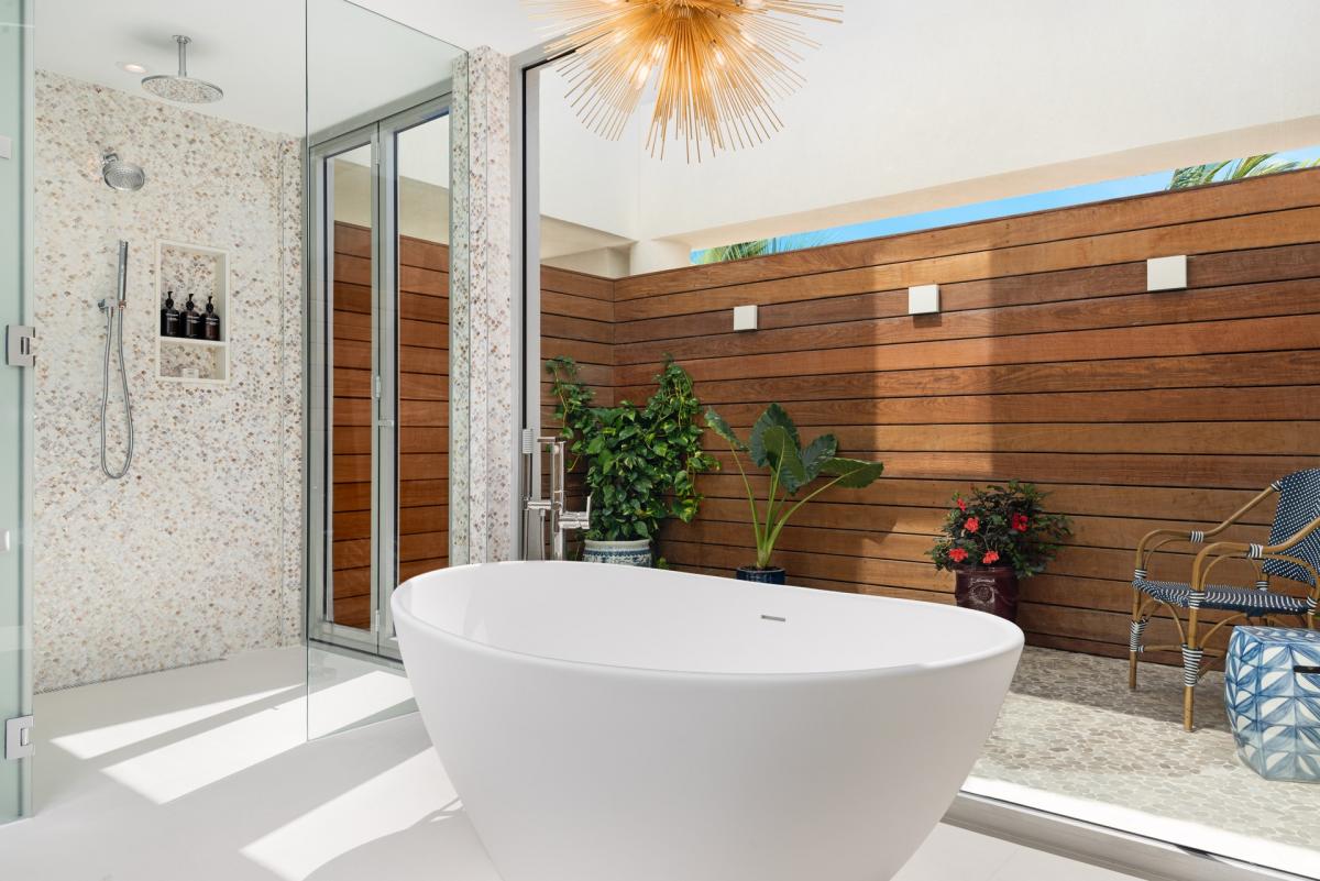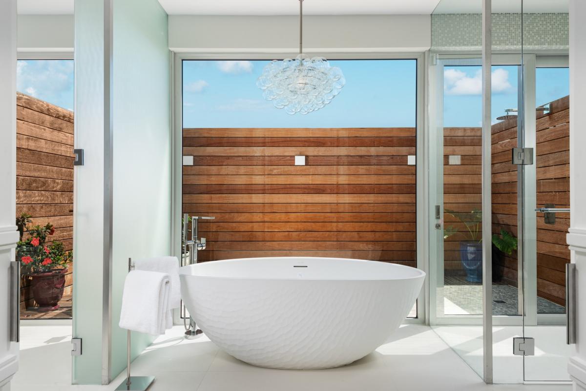 Bedroom 1: 1200 sq ft Principal Suite – King Bed, Living Room, Ensuite Bathroom with Bathtub and Shower, Oceanfront