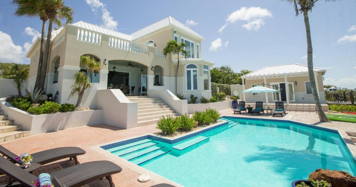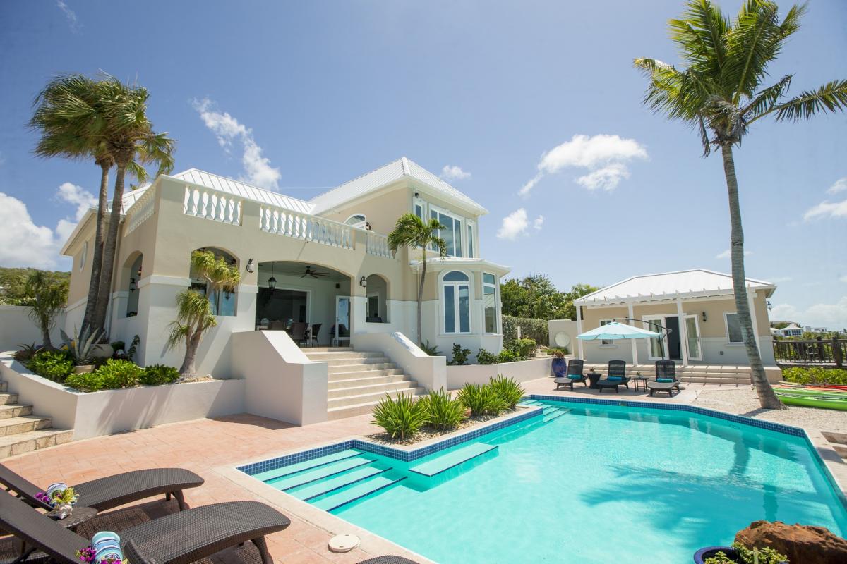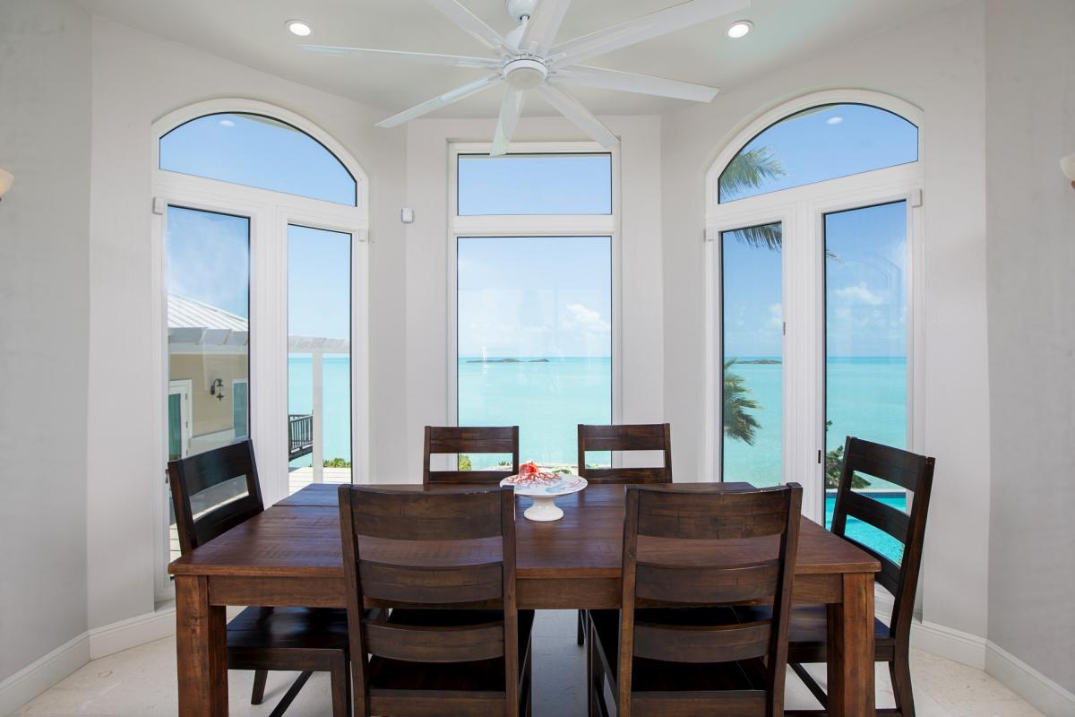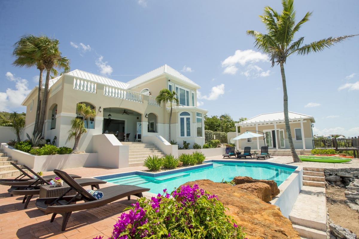 A 4000 sq. ft. Mediterranean styled palace in the sun, this four bedroom Three Cays Villa with 150 feet of water frontage has brand new stainless steel appliances, living, and bedroom furniture. The views from this Turks and Caicos villa in the tropics are endless and are some of the best on the island. Three Cays Villa's master bedroom has beautiful wooden french doors that open up to its own terrace allowing you to read your favorite book while you bask in the ever present trade winds. Additionally, with a semicircular stone staircase that literally disappears into gin clear water in the rear of the villa, you have never been closer to the water. Sit by the pool in the fully landscaped, mature gardens or lounge by the ocean on the large coral stone tile patio. For those who love to snorkel, Three Cays Villa is named as such because directly behind the villa, are three natural reefs teeming with sea life. For those lazy days you may wish to sit around in the ocean front fully covered terrace and listen to your favorite tunes with a sound system that has exterior speakers and can be heard anywhere in the pool area. Spend your Turks and Caicos vacation here!