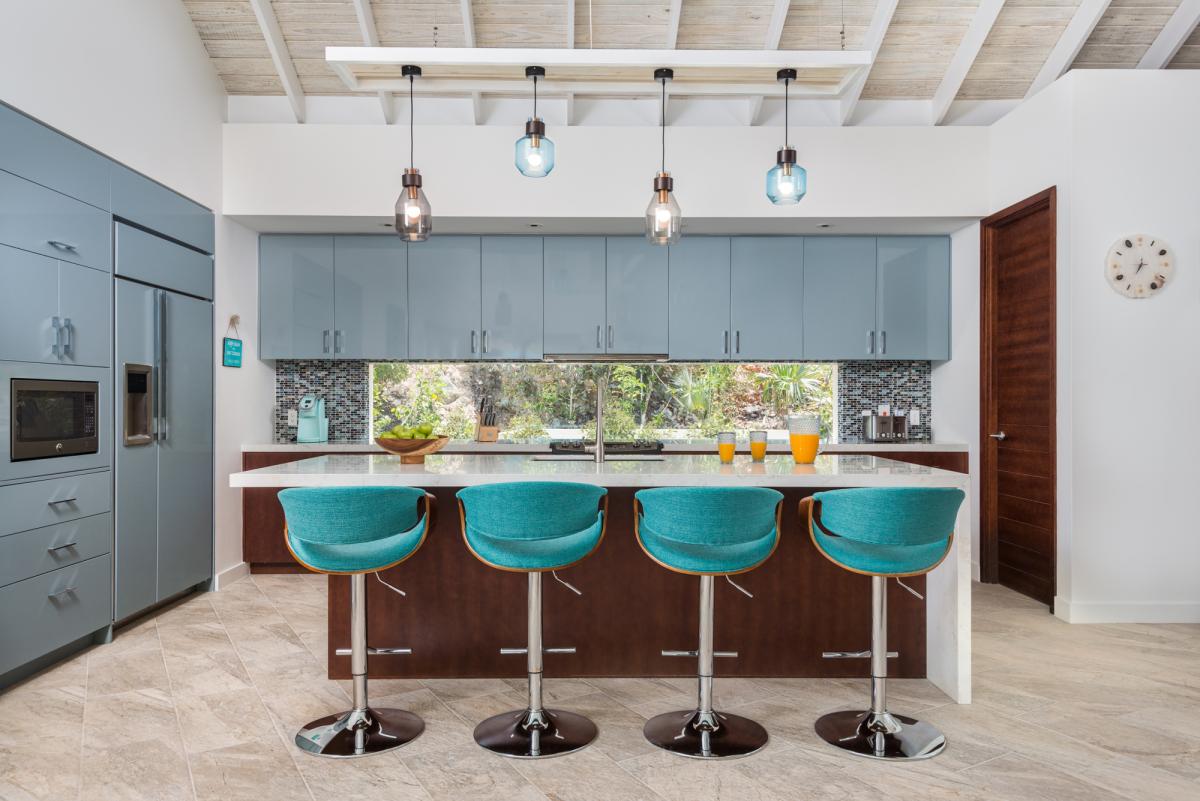 Villa Alinna is a single level that has a shallow pool with easy access to the ocean, this makes this villa perfect for families with young children and/or seniors. There is an annex above the garage, this offers families a game room with an exterior patio equipped with an outdoor pool table. Villa Alinna offers guests a mini-game room, equipped with weights, a treadmill, and a Bowflex machine. If guests wish, the annex may be converted into an additional suite with an ensuite bathroom and ocean views upon prior request.