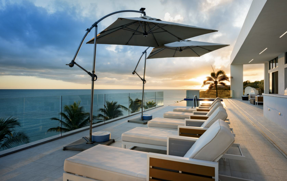 This modern, newly built property features spacious bedrooms and an extensive outdoor lounge and deck areas. The luxury villa in Turks and Caicos features four bedrooms, 4.5 baths on the main level and a separate two bedroom two bath guest house with its own entrance.