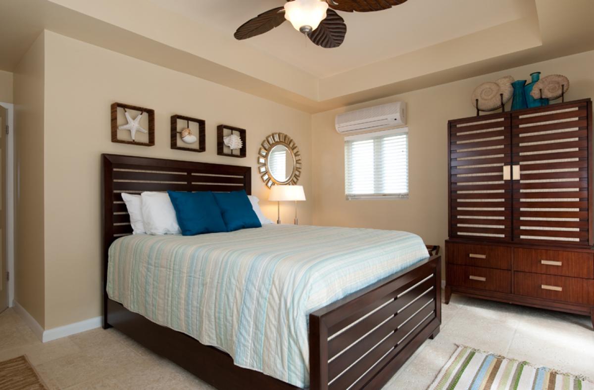 Bedroom 1: King bed, AC, en suite bathroom with shower