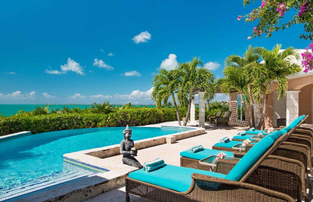Traditional island character and charm are exemplified by the beautiful, luxurious Villa Osprey. Situated oceanfront, this magnificent home offers spectacular views and unparalleled comfort. Each of the three bedrooms boasts an en suite bathroom and terrace access overlooking the crystalline turquoise waters of the ocean. Perfect for families with small children, the villa offers an infinity edge pool, a hot tub, and a shallow pool for kids! Beyond the pools, the veranda features a Tiki Hut, and ample space to enjoy the sun.