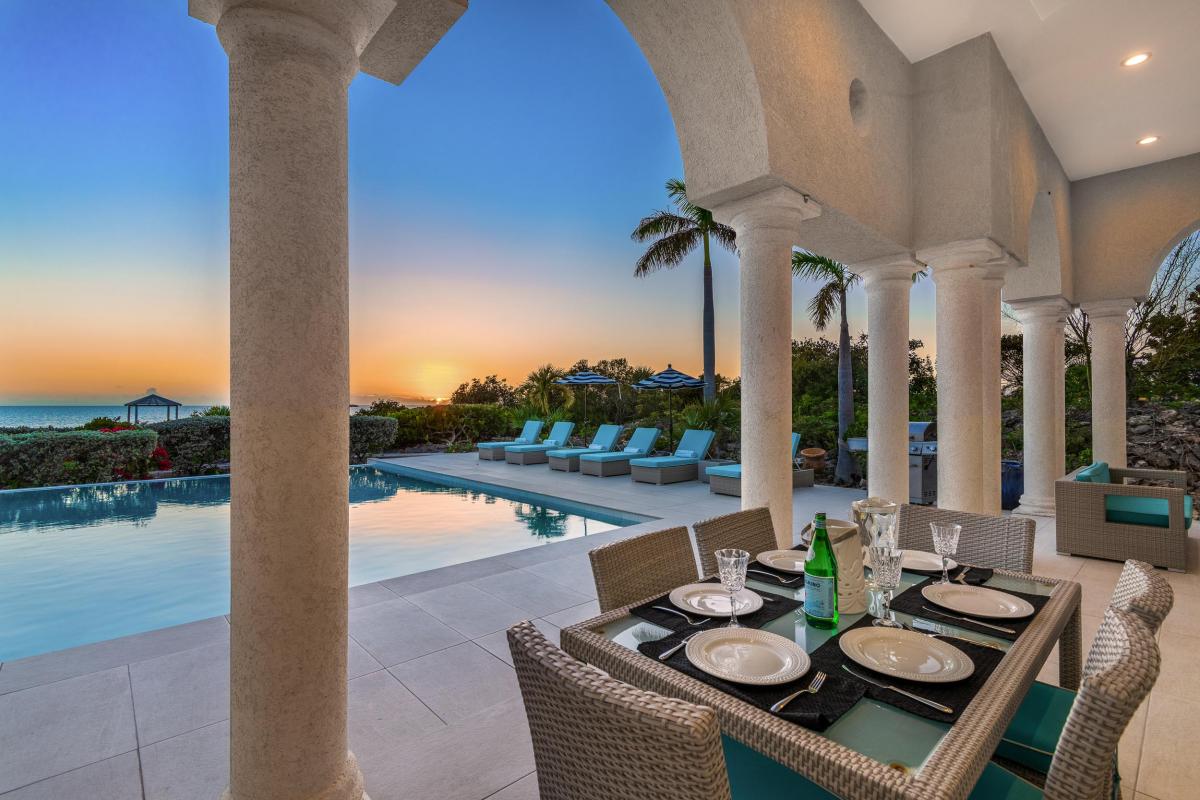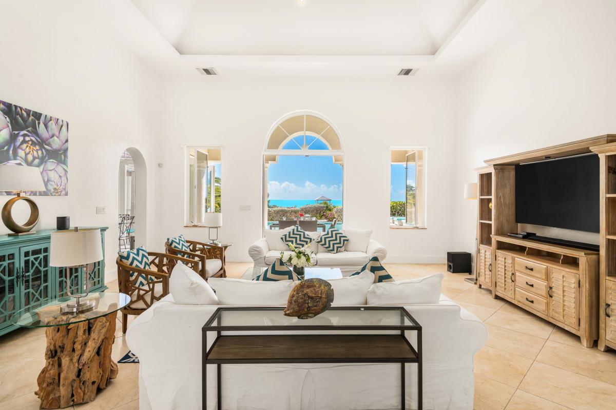 Villa Sublime captures the essence of island-style at its finest. Situated in the south coast of Provo in Silly Creek, Villa Sublime takes full advantage of the elevation overlooking enchanting views of Silly Creek, the blue crystal waters of the south shore, and magical sunsets over Turtle Rock. Villa Sublime is a fifteen minute drive from the airport, downtown Provo, shopping, restaurants and resorts. It occupies 1.5 acres of oceanfront property giving striking ocean views and the Silly Creek as a backdrop on its northern side. The 4,000 square foot interior includes three bedrooms, four and a half bathrooms, a separate den area which is convertible to a fourth bedroom with two full size twin sleepers, an open design living area and well equipped modern kitchen and dining area. On the lower level, there is a large double-car garage, laundry room and full bathroom. From the covered ocean side terrace bordering a large 32’x21’ infinity edge swimming pool, a stone pathway winds between a beautiful blend of exotic and indigenous plants to a uniquely arched grotto leading into the ocean. Swimming is beautiful in the clear and calm waters - a perfect beginning to the day.
