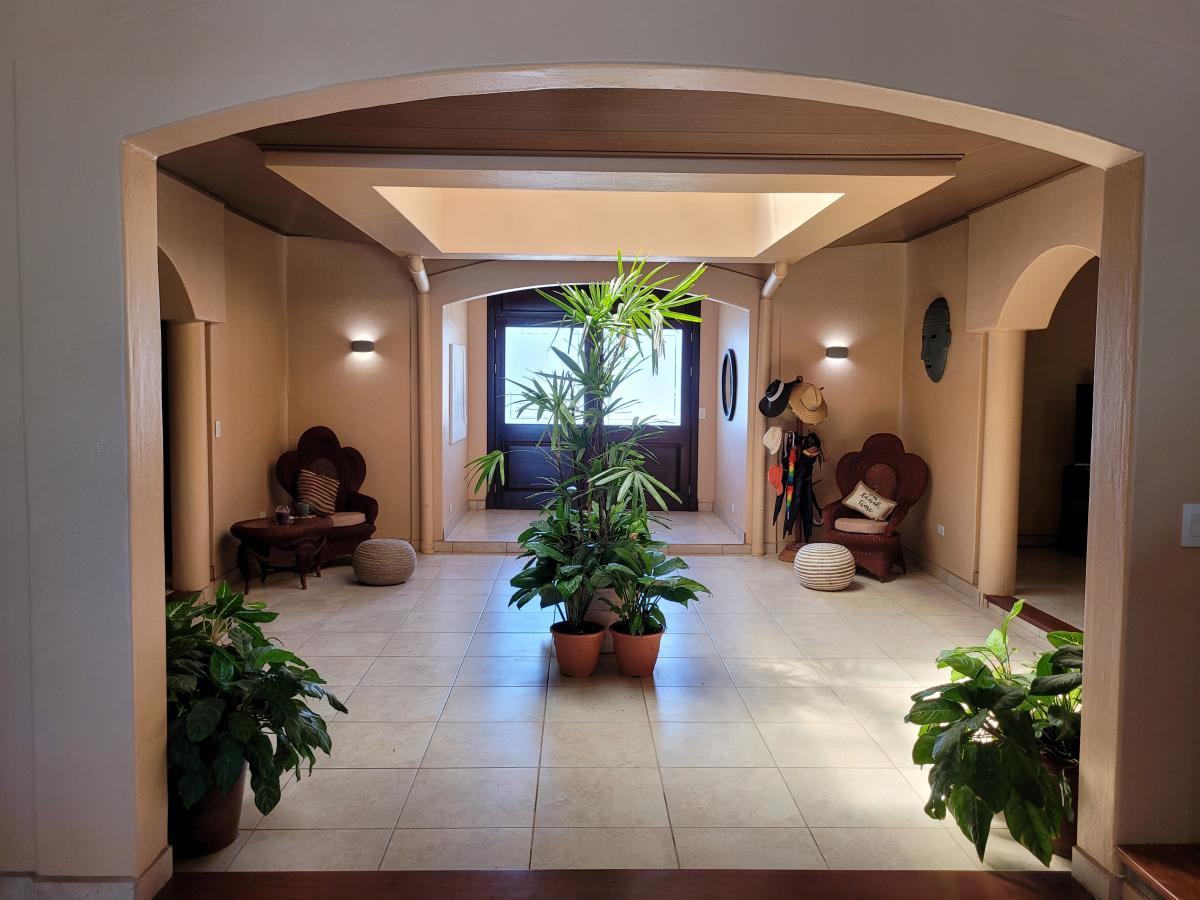 Villa Amor del Mar is a luxurious beachfront retreat situated within the gated Los Delfines Golf and Country Club, a 134-acre community boasting 6 kilometers of pristine coastline. Guests enjoy access to community amenities such as the golf course, clubhouse, and the Rancho restaurant and bar. This Costa Rica vacation villa features an open floor plan with five spacious bedrooms, all with ensuite bathrooms, accommodating 10 to 12 guests comfortably. Its master bedroom offers oceanfront views and direct access to a covered patio. The villa provides daily maid service, concierge support, and pool and garden maintenance, with an optional chef service for a curated dining experience. Guests are treated to personalized services tailored to dietary needs and preferences, adding to the villa's exceptional hospitality.