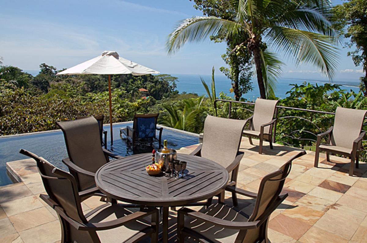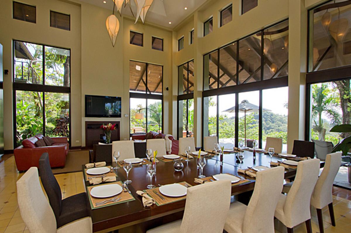 Villa Paraiso is a gorgeous 5 bedroom, 5.5 bathroom villa that is set in a most private and tranquil atmosphere. Located in La Reserva Gated Community Manuel Antonio, this 8,500 square foot property has the most magnificent ocean, mountain and rain forest views. Rated Top Vacation Rental 2012 by Trip Advisor, Villa Paraiso is decorated so exquisitely. The furniture was custom designed for the home. The gourmet kitchen is a chef's dream. And there is even another state of the art outdoor kitchen with a grill area. The large infinity pool and lush gardens make the outdoors so private and relaxing.