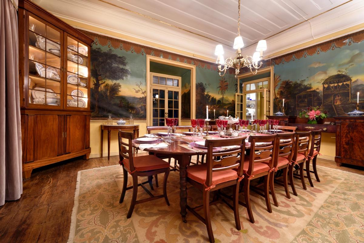 The traditional genteel Portuguese home, Casa de Santiago offers the architecture featuring scrolled stone details and comfortable facades. The gardens are sheltered but sunny and provide many fruits from the abundant trees. A heated pool and garden suite have access to modern-day comforts though the current owners have gone to great pains to bring creature comforts to the entire home.