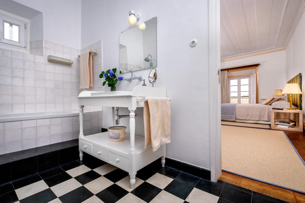 Primary: King-size bed. Large room with views over the village. En-suite bathroom – bathtub with rain-head and hand-held shower heads.