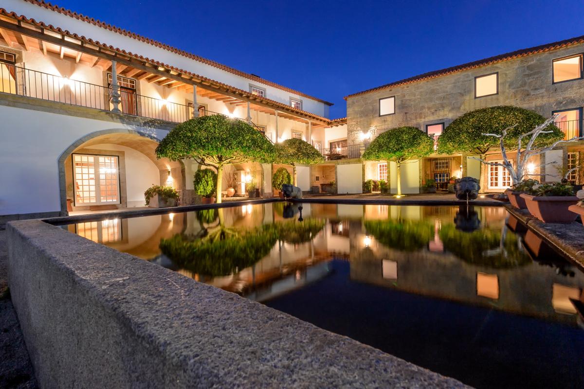 Solar de Vilar is a completely magical 18th century restoration. This manor home villa gives guests the impression that all roads lead to the twisting turning village road. Thick, white stone walls lead you through the gate and into the lovingly restored property. The husband-wife team of Maria and Luis have taken painstaking efforts to turn this property into a truly spectacular villa. While the home has been restored, decor has been selected fitting the elegant comfort design. Oversized sofas and armchairs compliment the European antiques. Each and every room offers bright sunny spots. The drawing room, dining room, kitchen, and master all open to the Solar de Vilar terrace offering views of the Serra da Estrela and Serra do Caramulo. The TV room, game room, library/office and private family chapel are all located at the front of the home.