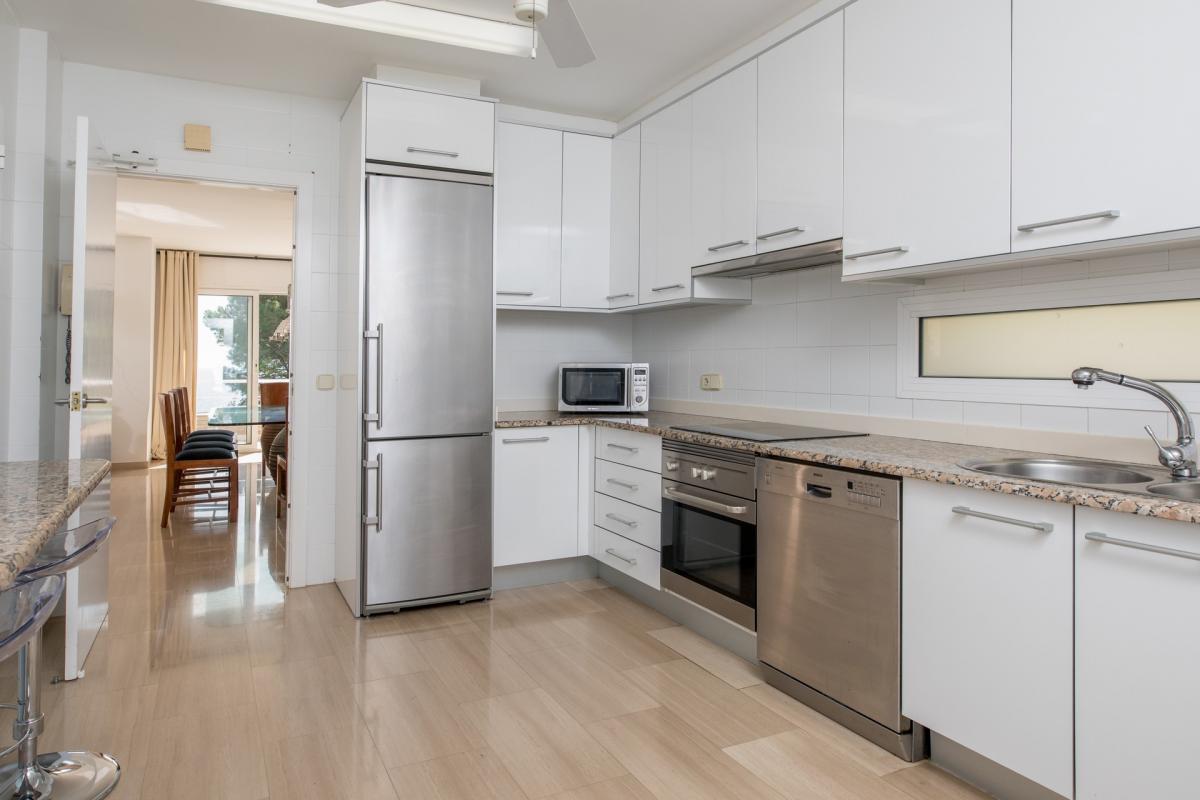 Upon entering Casa Brava through the well manicured garden, guests will find a small garage, the home’s main entryway and views of the sea in all its splendor. The foyer opens into a beautiful white living room with ample seating which surrounds a fireplace, flat screen TV and incredible sea views through the dual, oversized sliding glass doors. The attached terrace entices guests to enjoy the moonlight reflecting off the sea during the summer nights from the comfortable outdoor seating. Sitting adjacent to the living area is the dining room with seating for up to ten guests, conveniently served by the neighboring gourmet kitchen. Granite countertops, stainless steel appliances and breakfast bar for three invite friends and family to create memorable meals together.