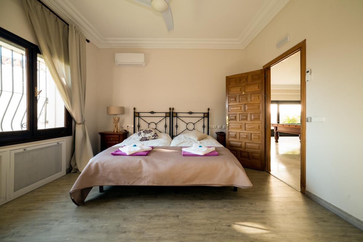 This 12-bedroom villa has everything you could possibly need for your Spanish get-a-way: luxurious interiors, a bar, functional party room, full-size snooker table, cinema room, pool, terraces running the length of the property, spacious bedrooms, gardens, and lounge.