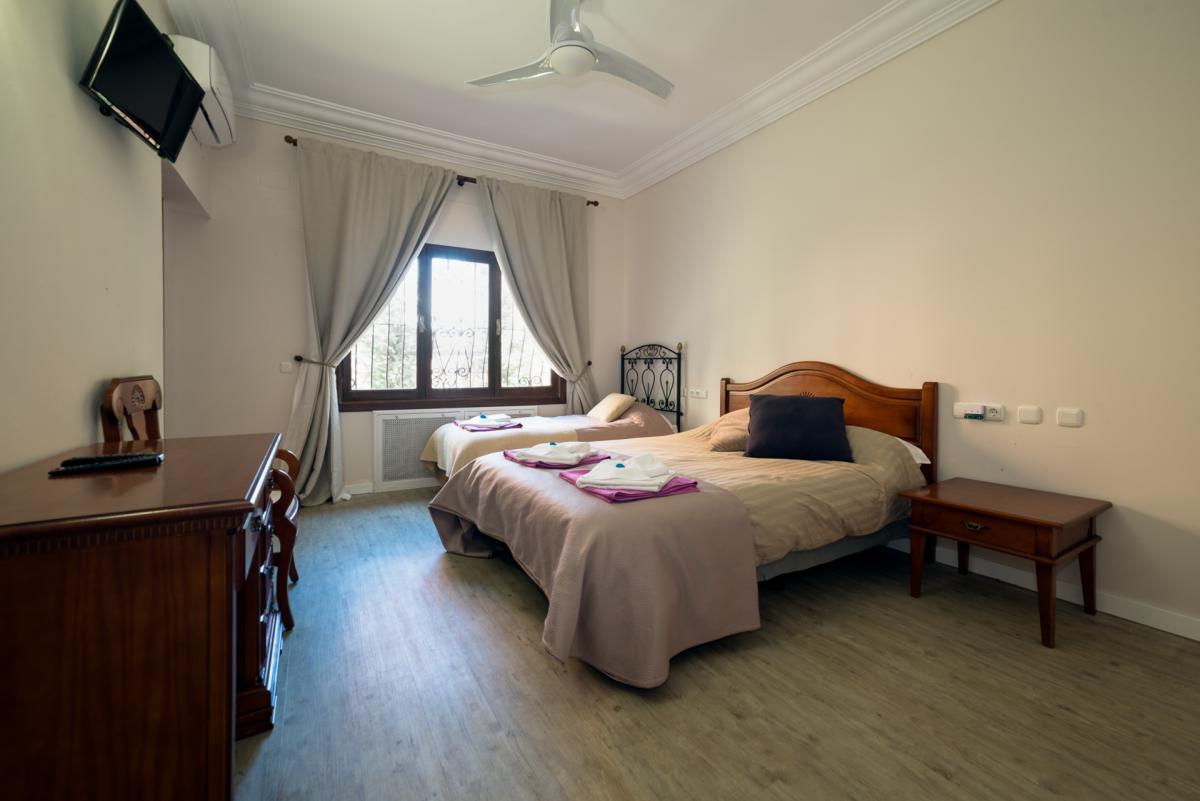 BEDROOM 4: Double bed plus Twin bed. Access to shared patio with pool, terrace and sea views. En-suite bathroom with tub, shower and bidet.