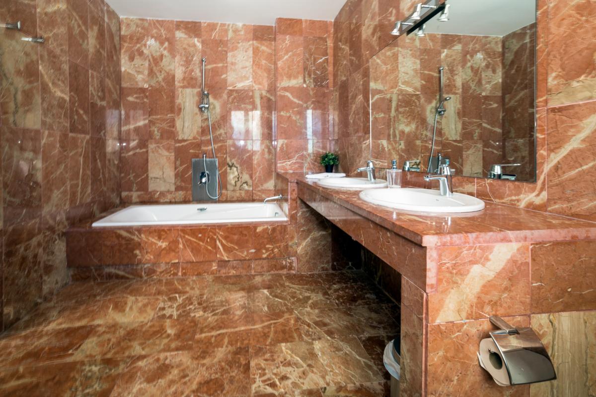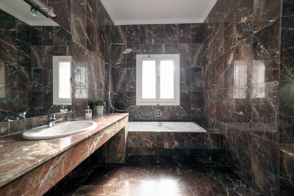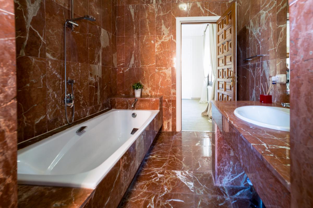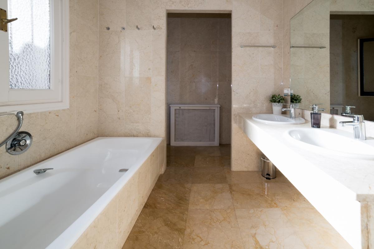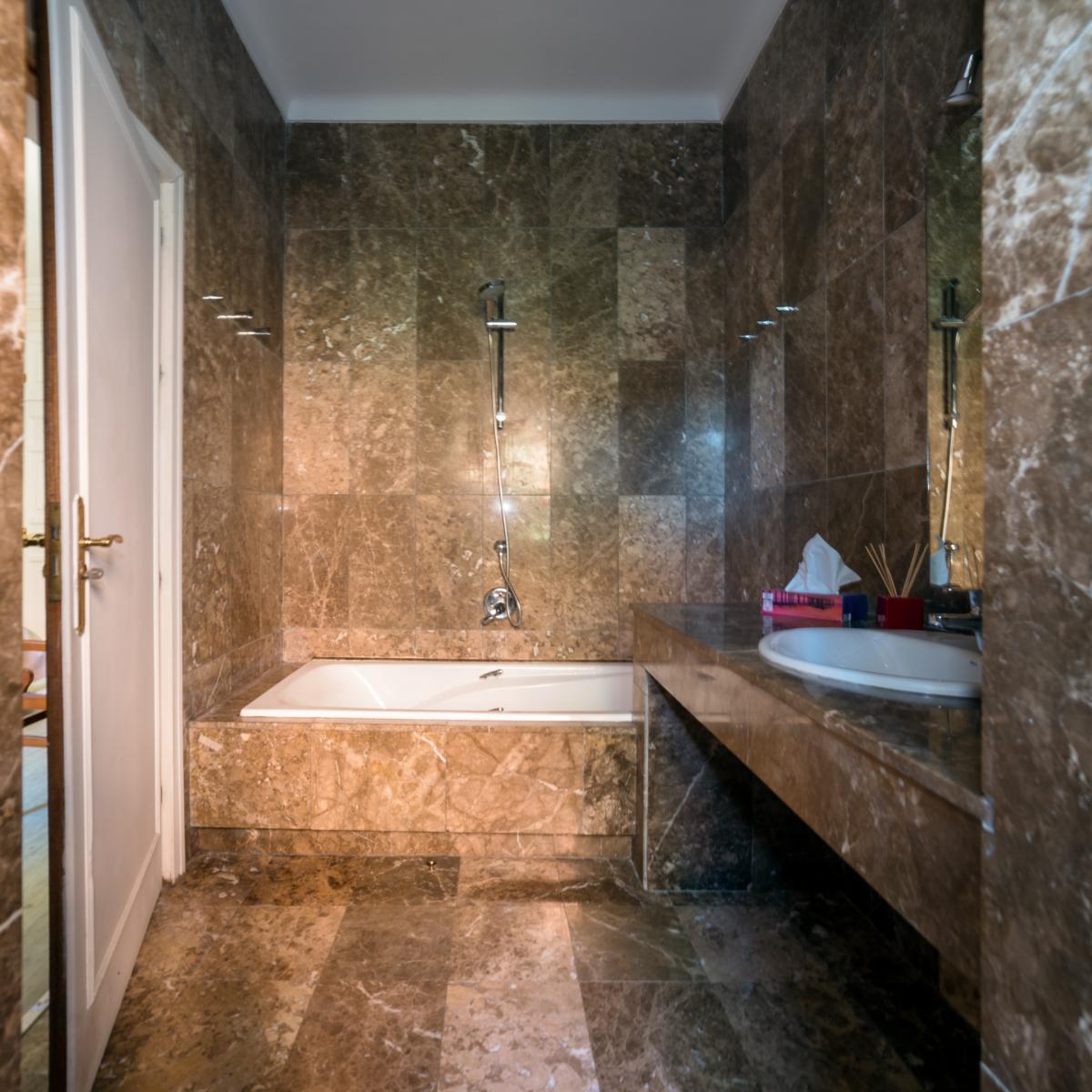 All bedrooms have elegant en-suite bathrooms with tubs, rain showers and bidets. The bathrooms feature beautiful marble tiling on the walls and floors and slabs of solid marble for the vanities.