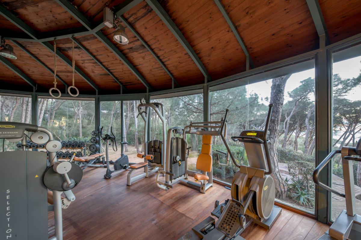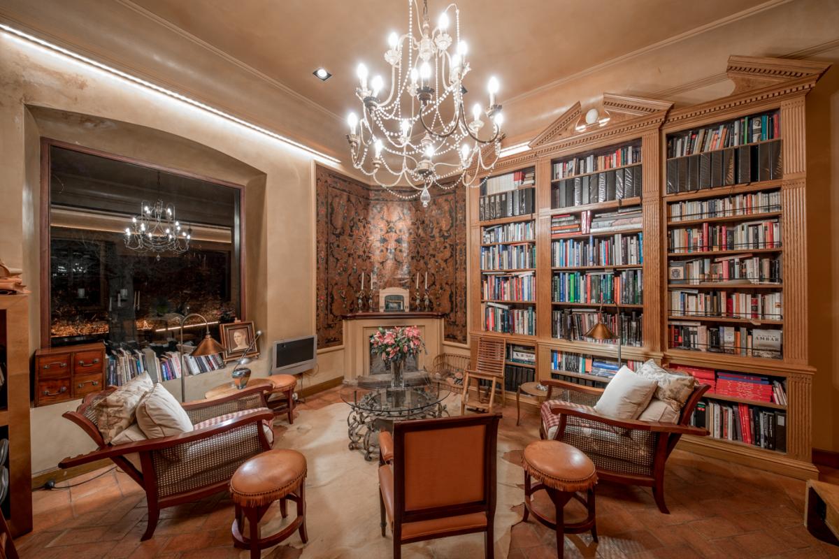 Completing the home’s interior is a gym, two massage rooms, Jacuzzi and Turkish baths, located in the turret within the main house. From this vantage point above the treetops, one can appreciate the genuine splendor of the entire property.