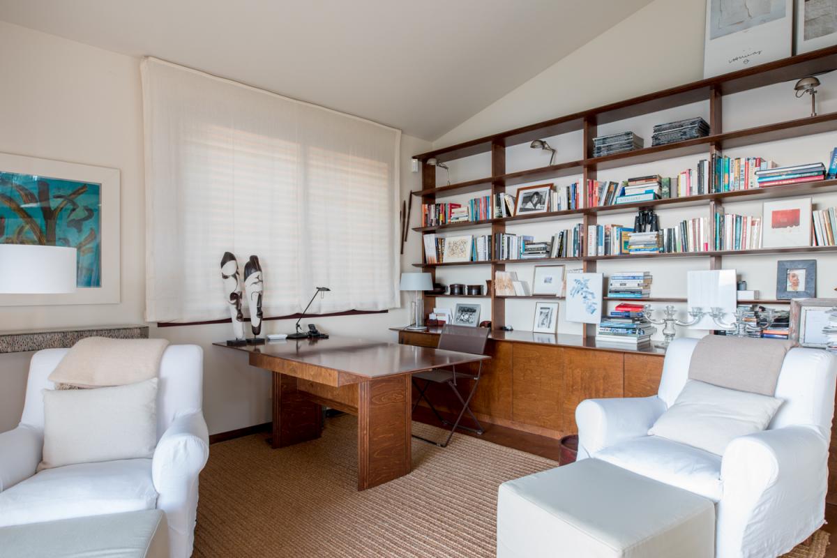 Located on the garden level just below the home is a large swimming pool with infinity edge that looks onto the expansive sea beyond. For added convenience while entertaining, a spectacular pool house is located poolside. Featuring large windows and comfortable lounge furniture, this space is perfect for fun with friends. Accompanying the pool on the grounds is a large garden with green space, allowing for incredible dinner parties under the stars.