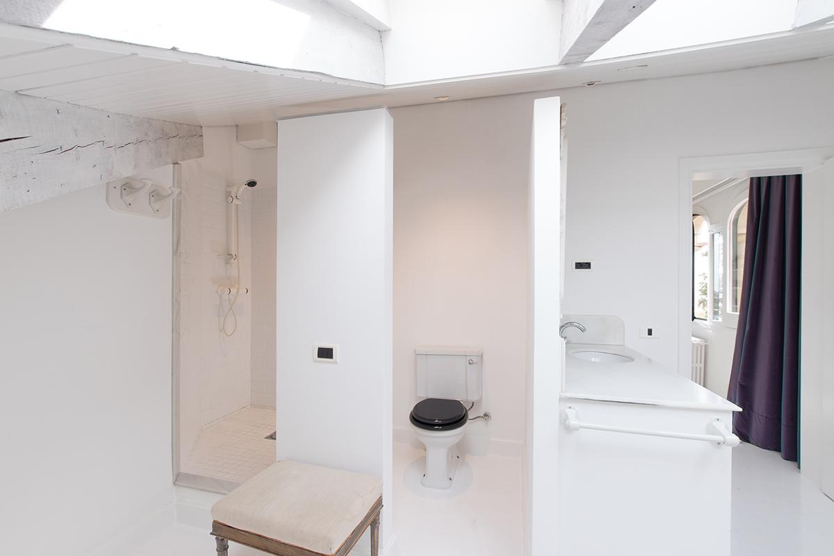 The top floor of Villa 1904 offers a clean, white finish, mixing modern and traditional style with colorful furniture pops throughout. Sitting center stage, a home theater with 9’ x 6’ movie screen and surround sound is upstaged only by the room’s large balcony overlooking Barcelona in all its glory. Accompanying the theater on the uppermost level are three additional guest bedrooms, each with its own en suite bathroom. The first is a king bedroom with mountain views as well as a bathtub and shower in the en suite, while the final two guest bedrooms are perfect for children. One bedroom boasts two twin size beds with twin trundles underneath each and more mountain views, while the other bedroom has a single extra long twin with trundle bed underneath, enjoying sweeping views of the city and the Mediterranean Sea. The en suite bathrooms for both children’s rooms have separate tub and shower.
