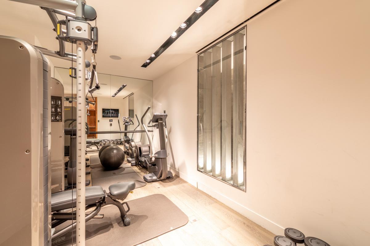Those looking to continue their work-out regimen while on their Swiss retreat will welcome the community gym with free-weights, weight machine, elipitical, stationary bike, yoga mats, ballet barre and flat screen TV. After working up a sweat, hit the showers in the gym locker room with waterfall shower, sinks and full steam room or enjoy a swim in the indoor lap pool.