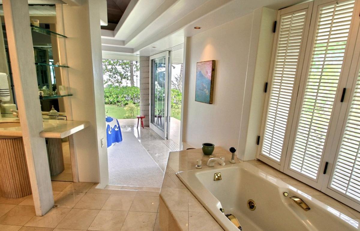 With an enviable oceanfront setting, this airy and newly remodeled modern home lets you take full advantage of one of Kauai’s most beautiful beaches. Just steps from the door, the calm turquoise waters of Anini offer year-round snorkeling and paddle-boarding due to the beautiful outer reef. In front of the estate, a lush garden with water features creates a haven of privacy.