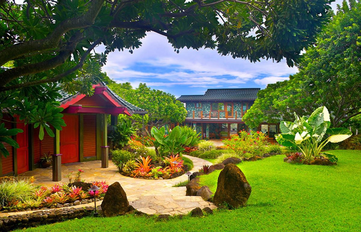 The Main Residence and charming Garden Studio and Library Bungalow are joined by meandering stone paths surrounded by exotic orchids, gingers, heliconias, and other colorful ornamentals. Dramatic tropical trees provide a swaying canopy of light and color and are home to many of Kauai's delightful songbirds. Unwind on the spacious ocean and garden lanais or take a leisurely stroll through the lovely gardens.