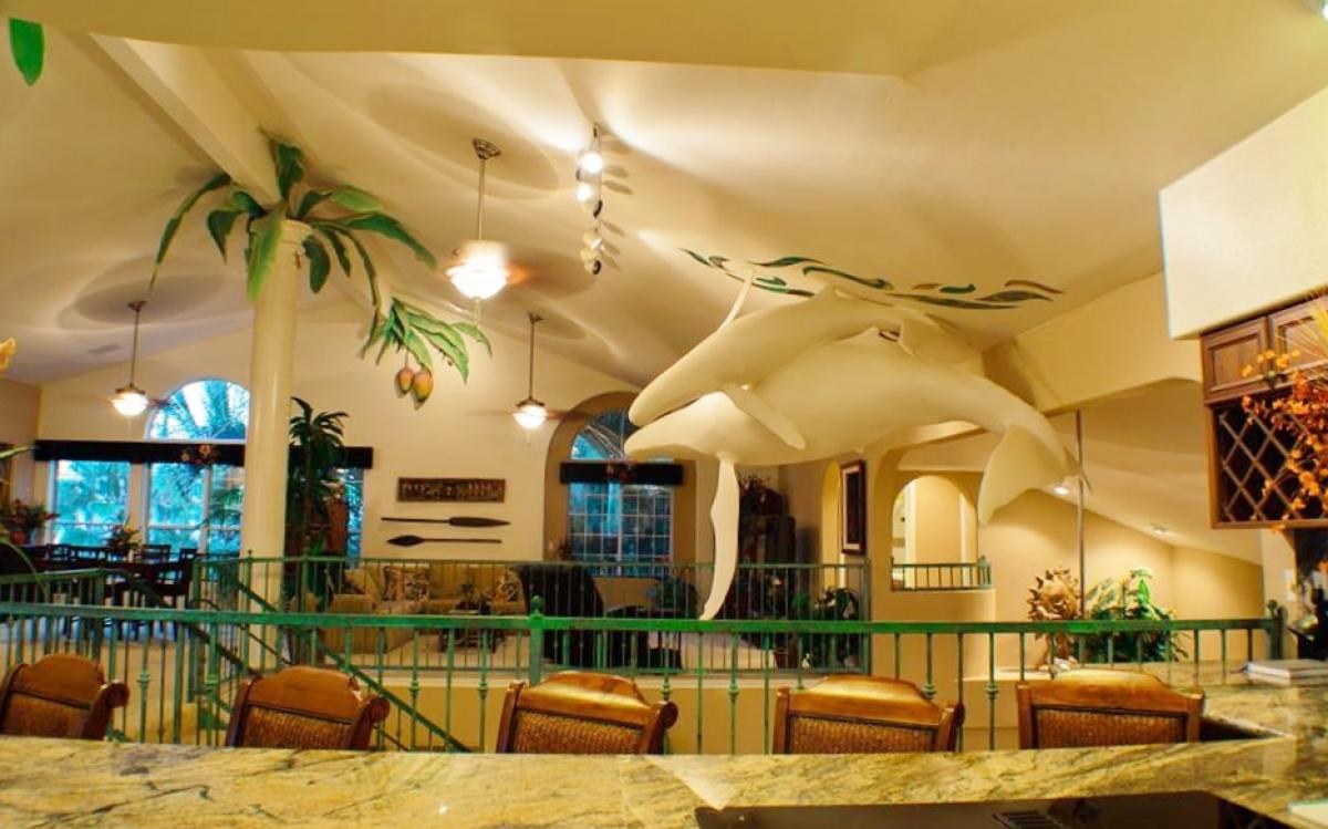 Entering Hale Kohola you immediately notice the marble floors, indoor waterfall with whimsical sculptured fish and inviting layout. Both Master Bedrooms are located on 1st level, each with ensuite bath. King Bedroom 3 and Queen Bedroom 4 are located first floor as well with an inviting living area central to all. A two story atrium rises before you in the from of an open winding staircase. Above is an amazing Humpback whale sculpture with several other artistic surprises in store. Hale Kohola has won several design awards, it is a villa of unique pleasures!