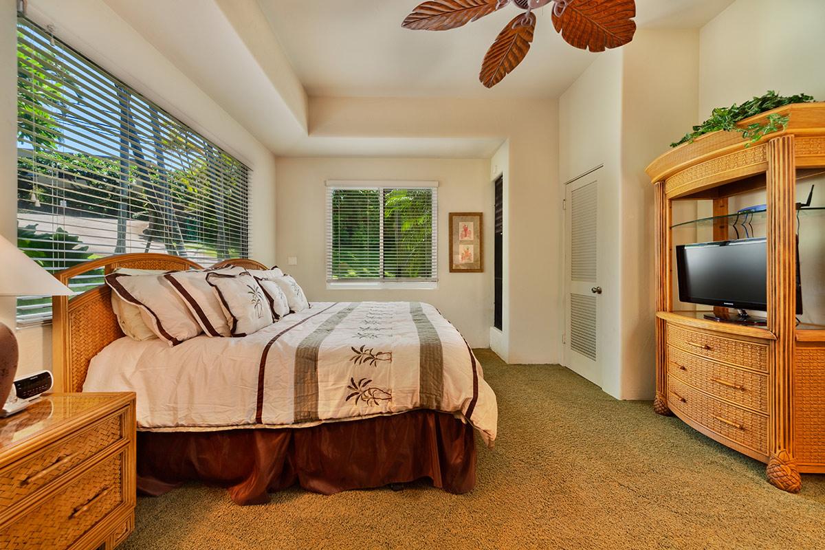 - Bedroom 1: King bed, Private Bath, TV