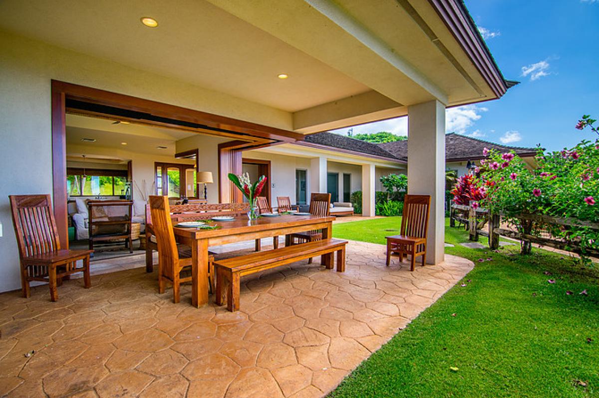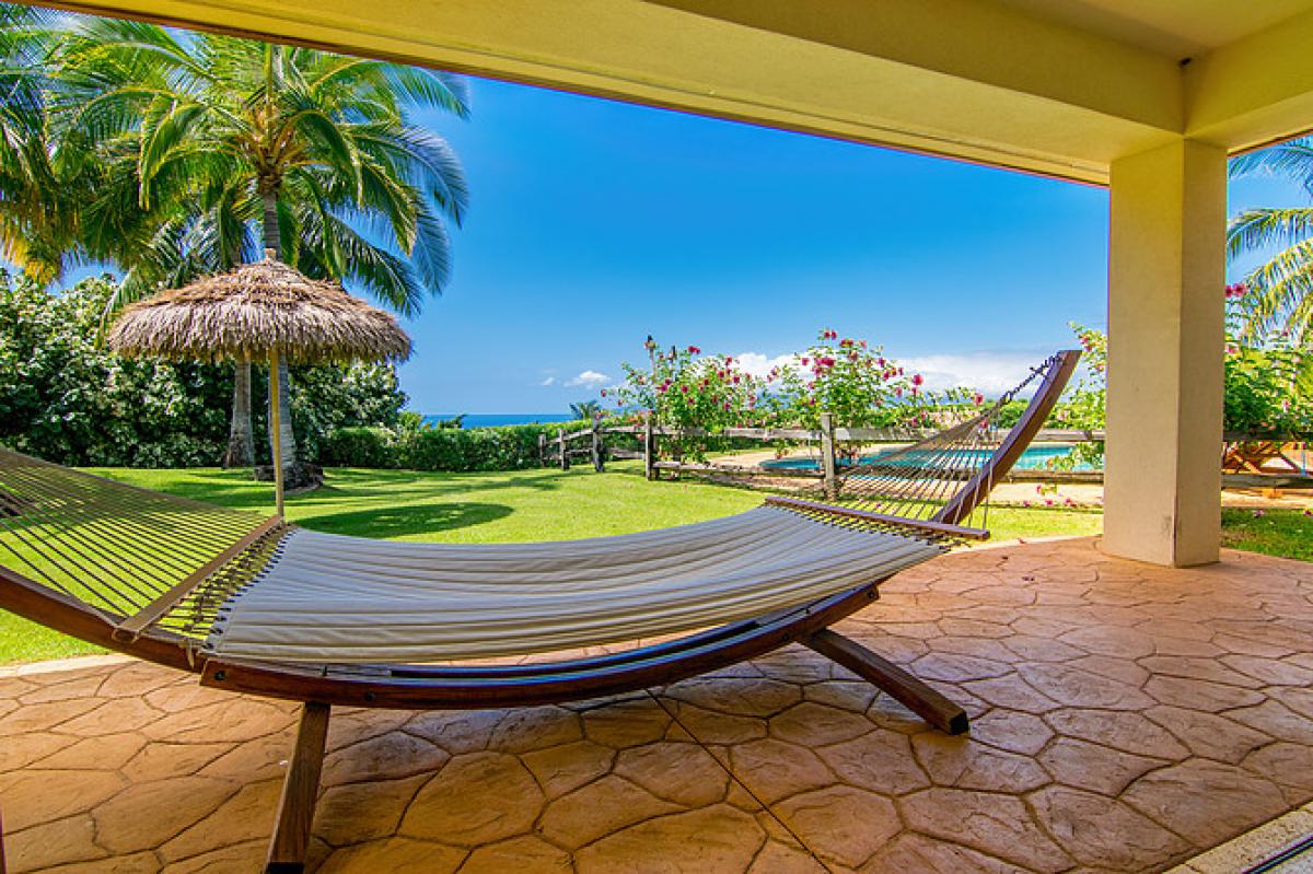 Help yourself to a rotating availability of local banana, papaya, avocado, orange, lime, tangerine, or lemon. Massive lawn areas drape the main house and cottage, and provide ample grounds for children to run and play. Children are loved and welcome! There is an outdoor hammock to relax on, propane tiki torches for night time, and a large outdoor table for family meals or celebrations. Walk amidst the outdoor collection of mature local foliage, including plumeria trees, natal plum, and coconut palms.