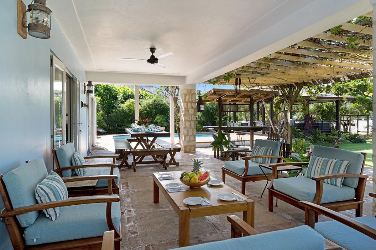 Sleepy Shallows is a beautiful villa in Jamaica. This Jamaica vacation rental sits on a grassy lawn that stretches down to the white sandy beach and the waters of Bengal Bay. Sleepy Shallows gives guests a place to embrace outdoor living with multiple places to sit and relax, read a book, or enjoy with friends and family. On the ground level, there is one bedroom, and there are four more bedrooms and a game room equipped with a TV and a pool table. There is plenty of seating and dining areas along with a gazebo near the pool with sofas and a hammock to enjoy the beachfront. Enjoy the white sand beach of Sleepy Shallows.