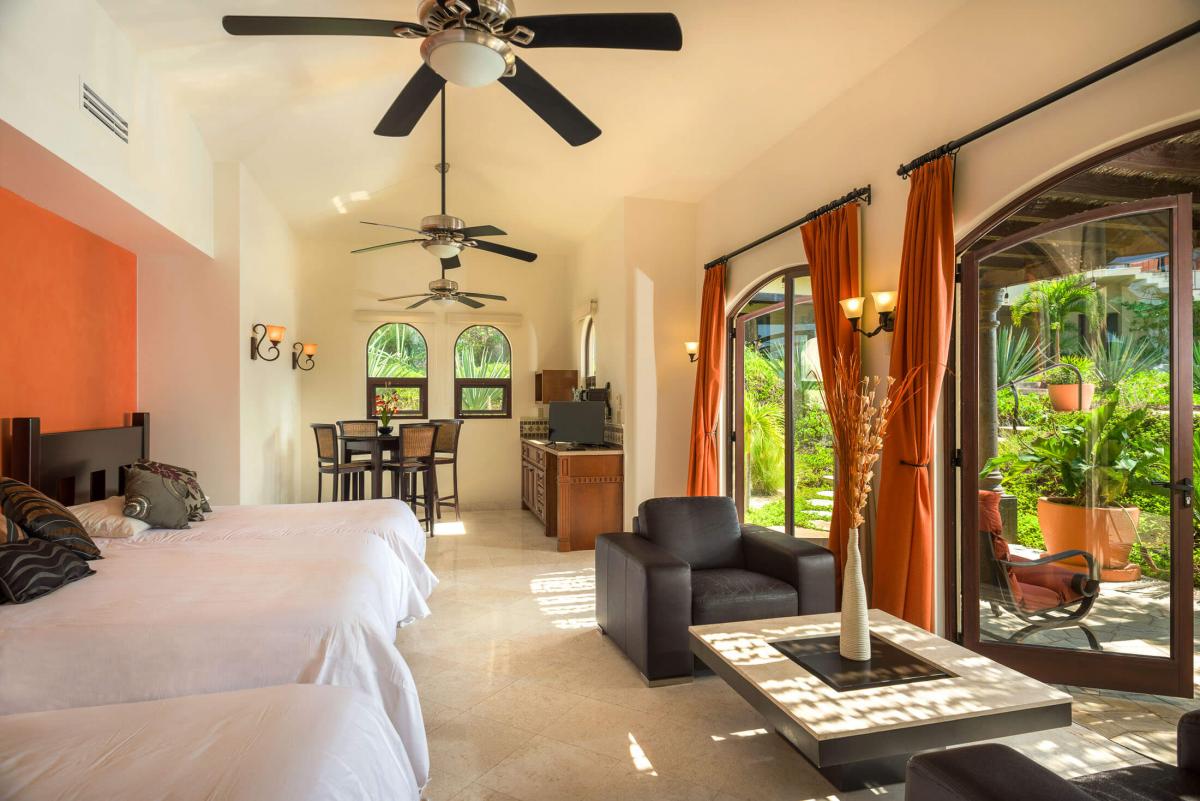 Bedroom 4: Pool Casita 1 with queen bed, two twin beds, en suite bathroom with shower, hair dryer, satellite TV, private terrace, kitchenette, garden view