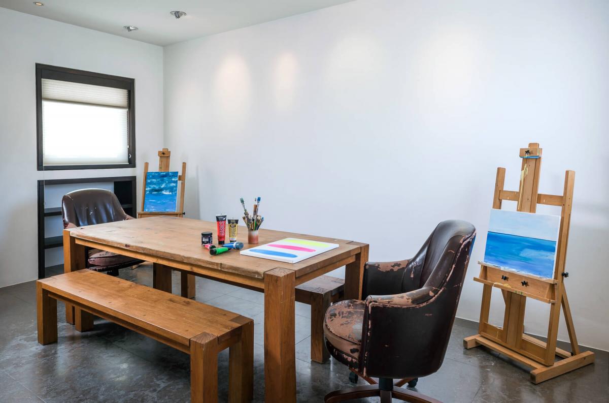 This luxury villa follows an open concept design. The gourmet kitchen, living room and 14-seat dining area provide the perfect space for entertaining. The six suites and guest apartment provide ample sleeping space for a family reunion or vacation. Two rooms have a king bed and all other rooms have queen beds, all with en suite bathrooms.