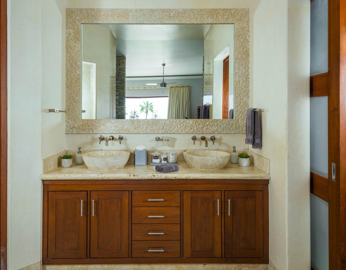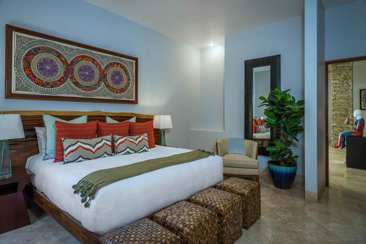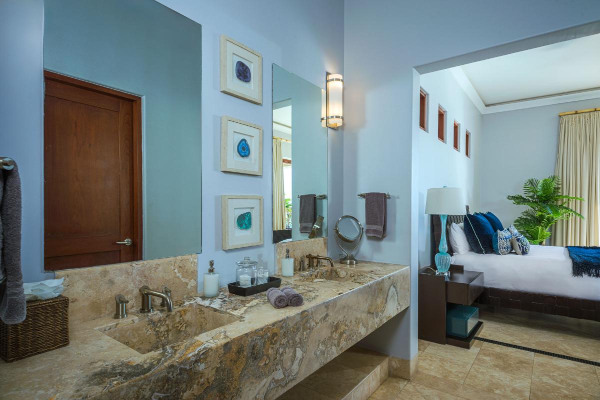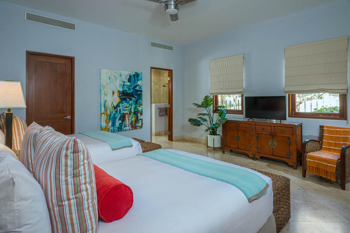 This Los Cabos villa boasts a beautifully designed interior with five spacious bedrooms, each featuring an ensuite bathroom and walk-in shower. Three bedrooms are fitted with plush king-sized beds, one offers two queen beds, and another includes a single queen, making it ideal for accommodating families or groups in style. Modern sophistication blends seamlessly with local charm, creating an elegant and inviting atmosphere. Every detail of the villa has been carefully curated to provide a comfortable and luxurious retreat, ensuring guests feel pampered throughout their stay.