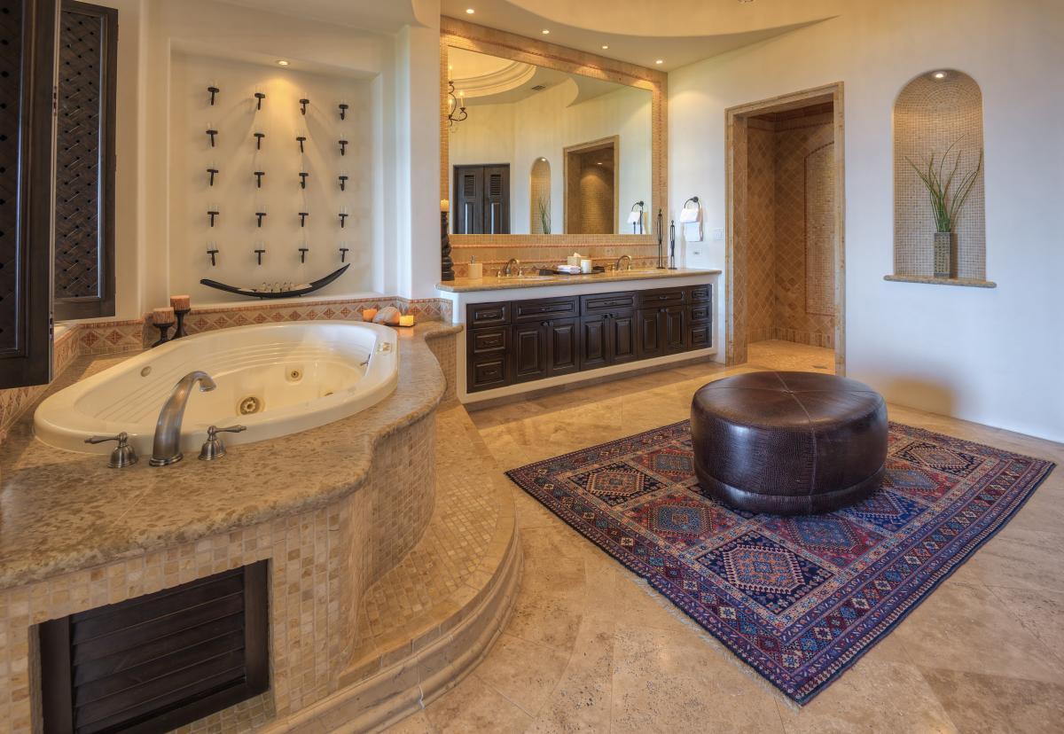 Perfectly suited to the enchanting topography, Casita 20 exudes an unmistakable warmth ideal for an incomparable family vacation. A striking terrace, complete with comfortable sunbeds, floats above the Sea of Cortez allowing adults to lounge while children frolic in the infinity pool. A capacious bedroom — outfitted with double beds, a dining section and a cozy seating area — is the perfect place for teens to congregate. Subtle romantic touches abound, such as candled chandeliers in the great room, a canopied bed in the master suite and tantalizing grand-spa bath.