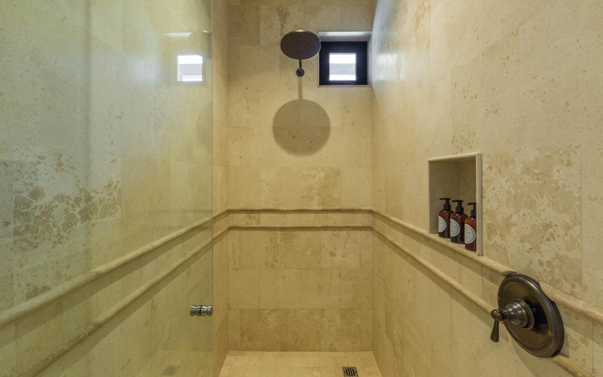 There are two bedroom suites with king beds and one with two queens. The king suites include ensuite bathrooms, and one of the suites to the pool terrace. The queen bedroom also opens to the terrace. All of the suites include safes, televisions, and ceiling fans. With accommodations for eight, Casita 5 is an excellent vacation rental for families and destination wedding guests.