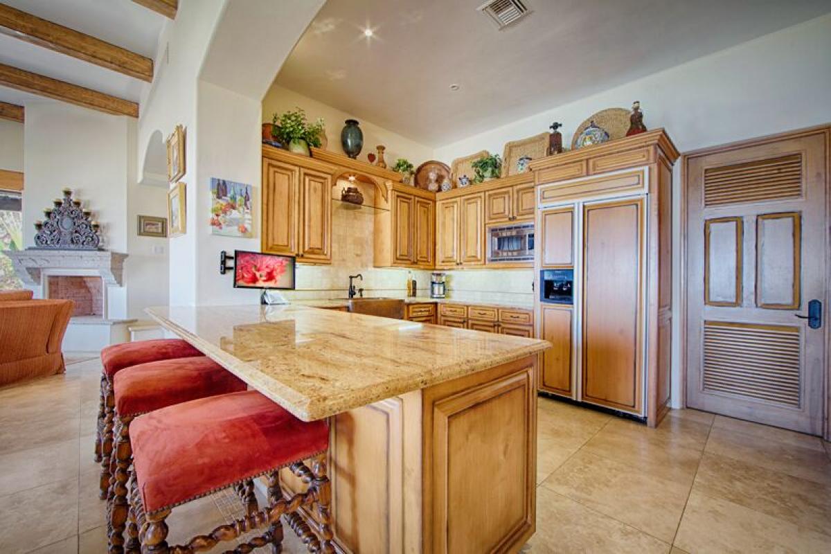 Snuggled into the hillside, Casita 50 is a haven for those looking for an escape from the mundane. Here there is no need to go indoors — except to sleep in the down-covered beds. A marvelous stone wet bar also houses an impressive outdoor kitchen, allowing guests to prepare all of their meals al fresco if they choose. Diners can eat at the bar or move to the cozy dining area under the veranda. If the evenings turn chilly a delightful fireplace is available. The interior — if a bit of shade and air conditioning is preferred — is equipped with every luxury including a spacious gourmet kitchen, living areas with expansive views of the ocean and opulent baths.