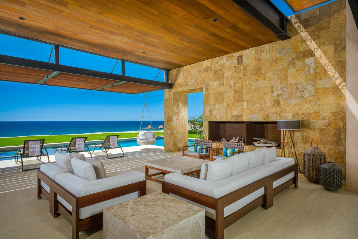 West Enclave #4 continues the seamless blend of indoor and outdoor living, with massive glass doors that open the main living room to both the ocean and a serene courtyard with additional seating and a fire feature. Some of the five bedrooms open directly to outdoor spaces, allowing guests to wake up to the sound of rolling waves. The luxurious spa-like baths include large soaking tubs and outdoor showers, further enhancing the indoor/outdoor experience of a Los Cabos vacation. The home also features a gourmet kitchen with a wine fridge, and a dining table for ten. Located in the sophisticated and private RC Reserve Residences, West Enclave 4 offers proximity to the RCZ hotel, world-class golf, a marina, and some of the region's best outdoor adventures.