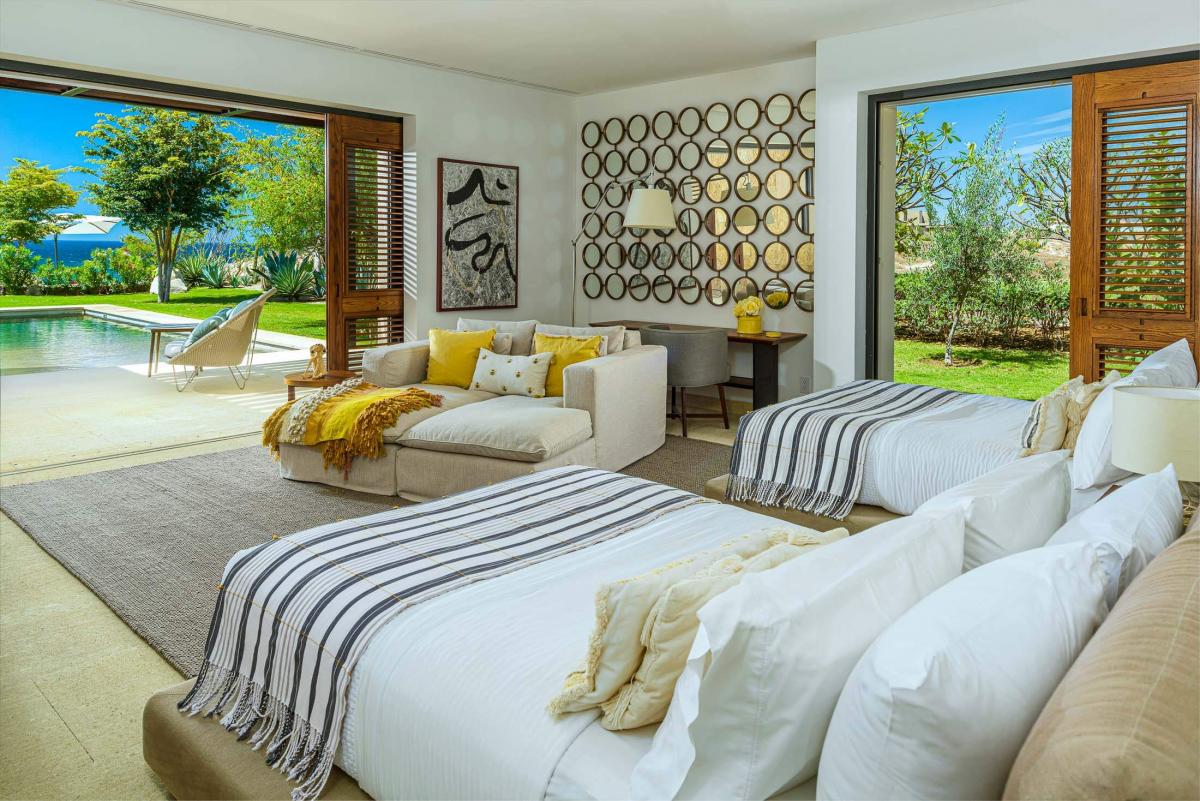 Bedroom 2: Two queen beds, ensuite bathroom with shower, satellite TV, private terrace, in-room air conditioning, and an ocean view