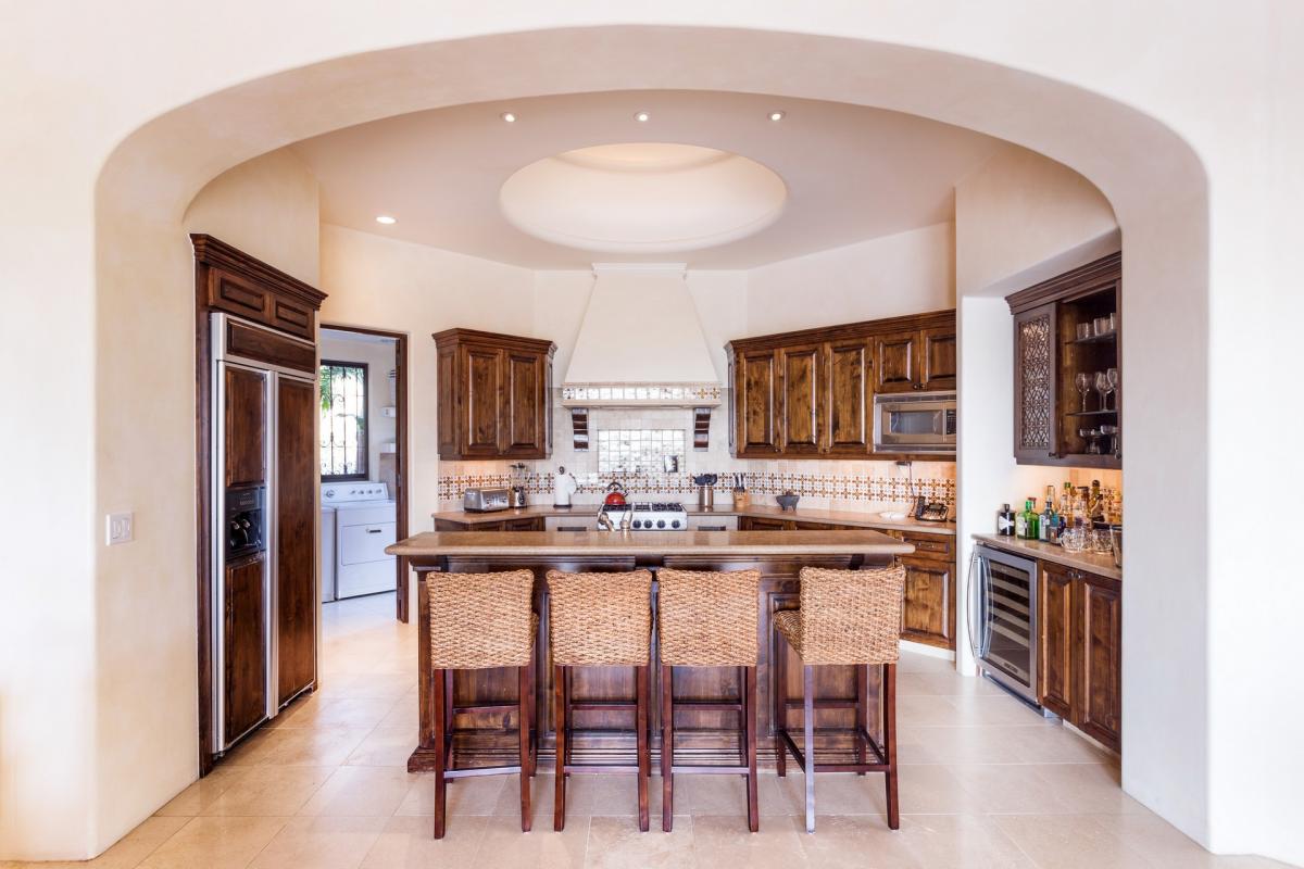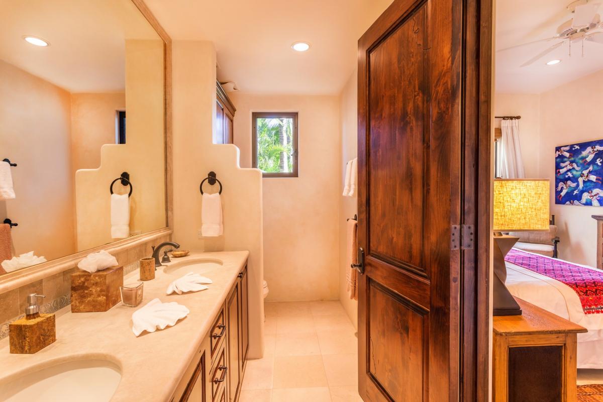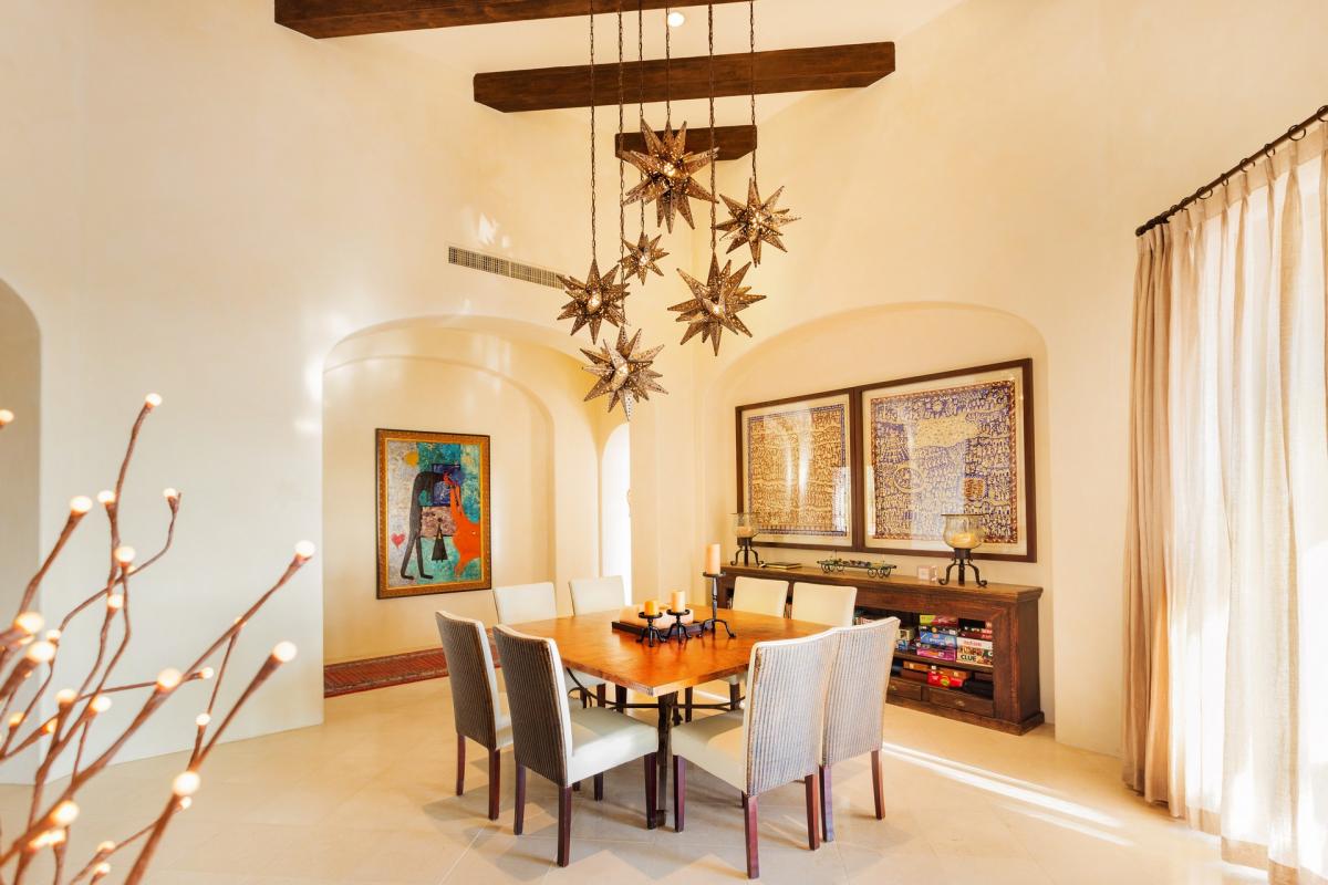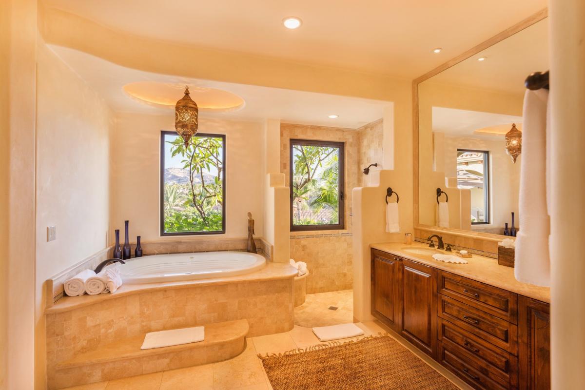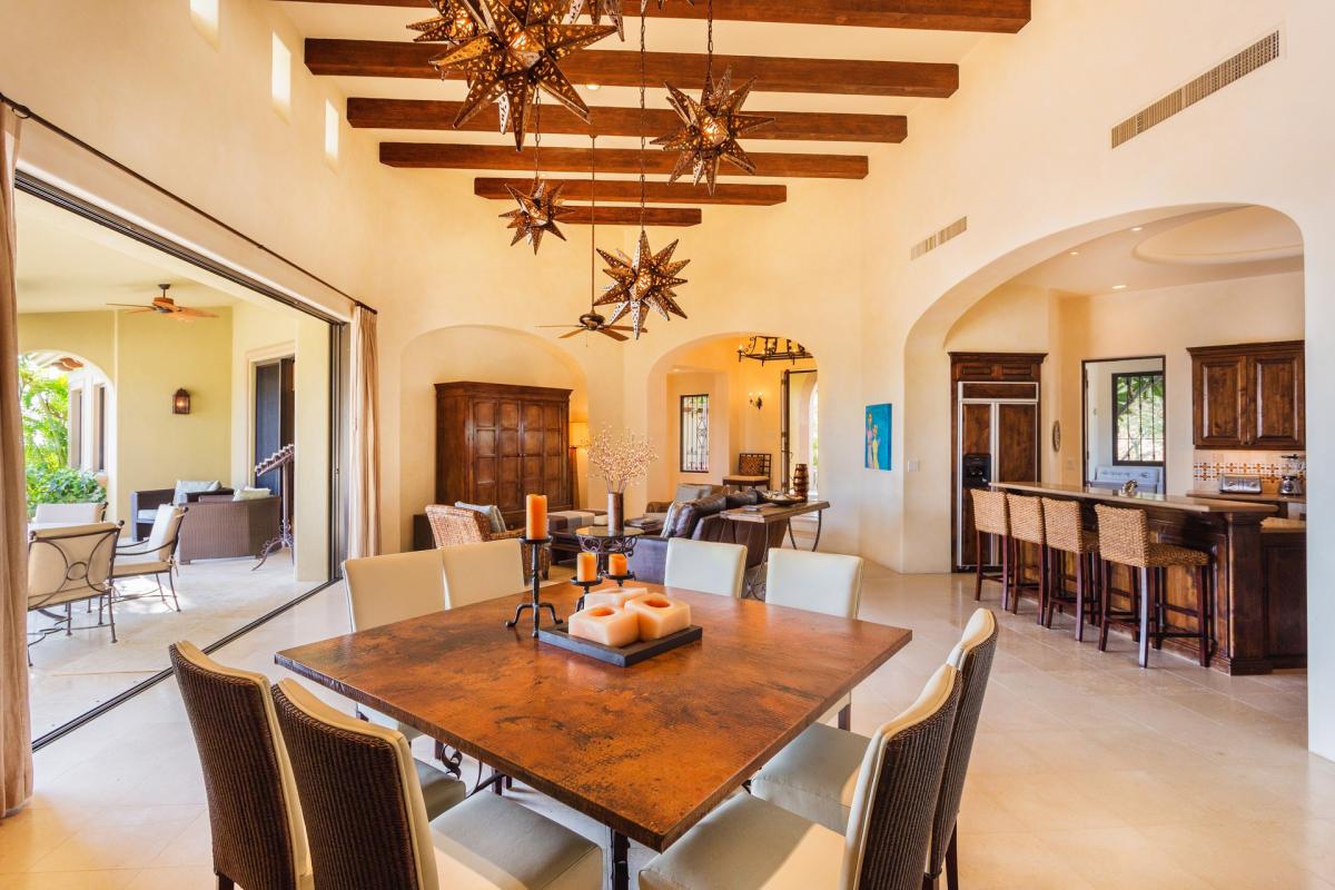 Soak up spectacular sunsets and icy margaritas while enjoying the unaffected beauty of Palmilla in Entrada 71. After preprandial cocktails in the conjoined living and dining rooms, guests can step out onto the free-form terrace to enjoy ocean vistas and the smell of freshly caught fish being grilled in the outdoor kitchen. A cozy fire pit warms the air after midnight dips in the infinity pool and spa. Authentic furnishings pepper the contemporary interior, which boasts exposed beam ceilings, capacious bedrooms and a minimalist aesthetic. Oversized windows open to tropical breezes, lulling tired travelers to sleep.