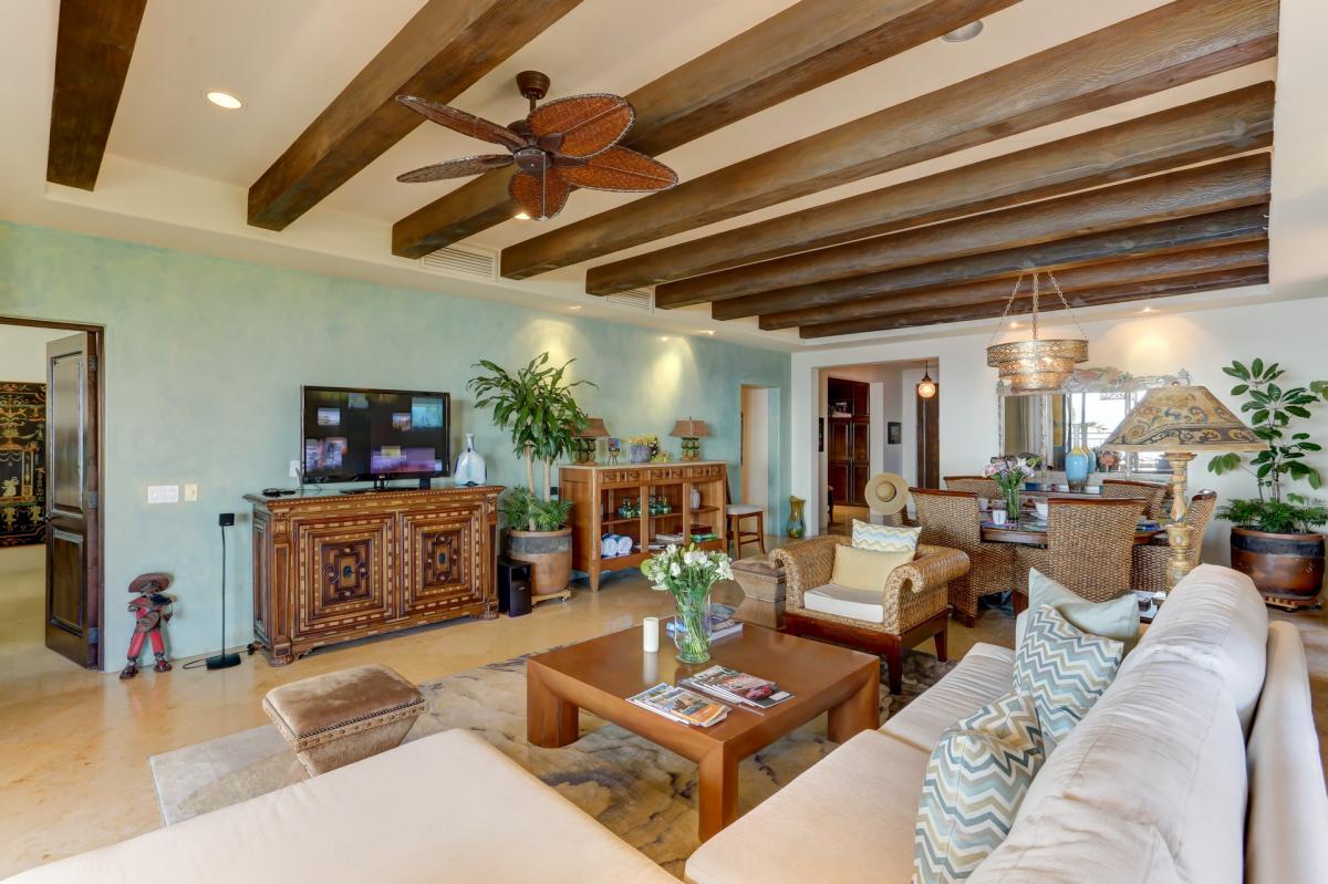 The Hacienda concept incorporates superior amenities such as a state of the art full-service spa and fitness center, 2 magnificent infinity pools, Palapa Bar and several dining options: beach, pool, restaurant and private chef service. Although the restaurant, Cocina y Cantina, is highly rated as one of the top in the area, it exudes an unpretentious, warm and hospitable feel. Many other restaurants, bars and entertainment options are only steps away as the property is nestled between Medano Beach nightlife and the Marina. One of the really special aspects of this location is the lack of the need for a car. How exhilarating it is to be in short walking distance to so many fun venues for music, food and entertainment!