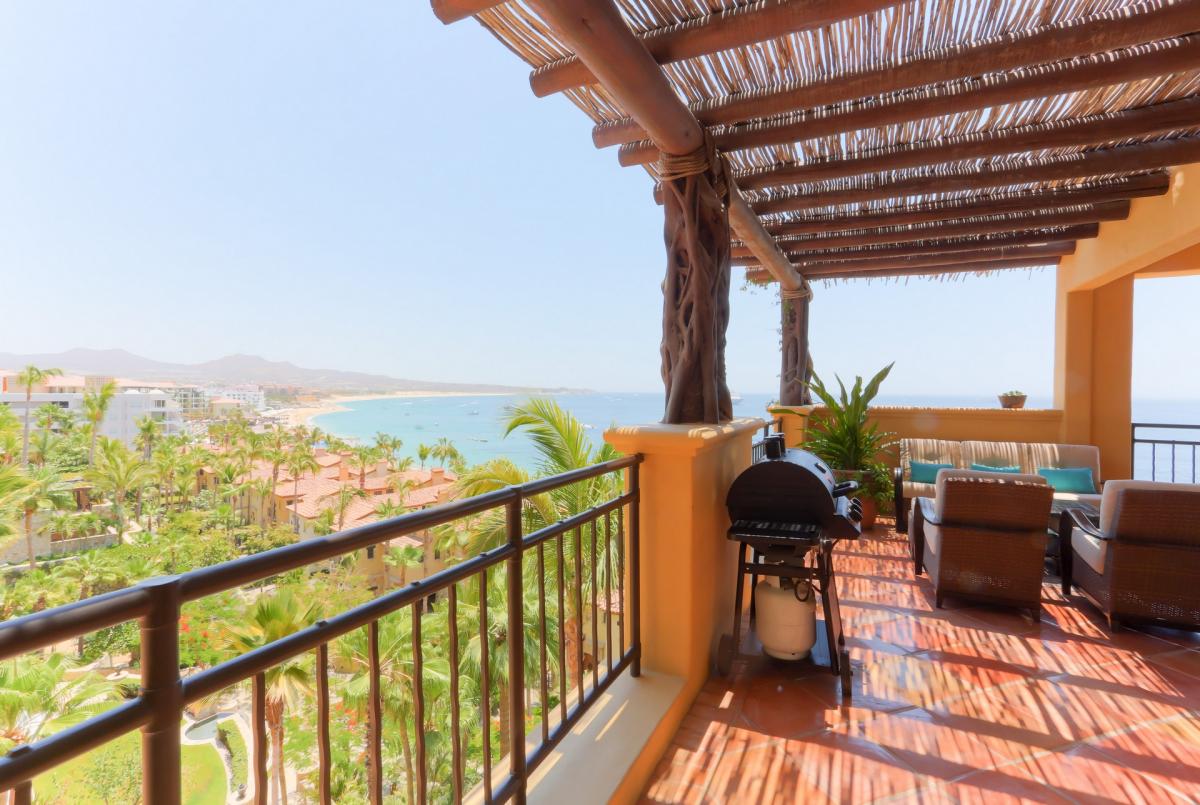Welcome to Hacienda Tranquila located directly on Medano Beach right in the heart of Cabo San Lucas and just steps away from the Marina. Set in the midst of the vibrant energy of Cabo San Lucas, this newly decorated 2-bedroom, 2.5-bath residence offers a tranquil atmosphere and every comfort. This 4th floor unit is conveniently situated in Building 4 which is close to the Spa, pools and restaurant. En-joy breathtaking panoramic views of the Sea of Cortez and Land’s End from the living area and wrap around covered terrace (one of the largest in the resort).