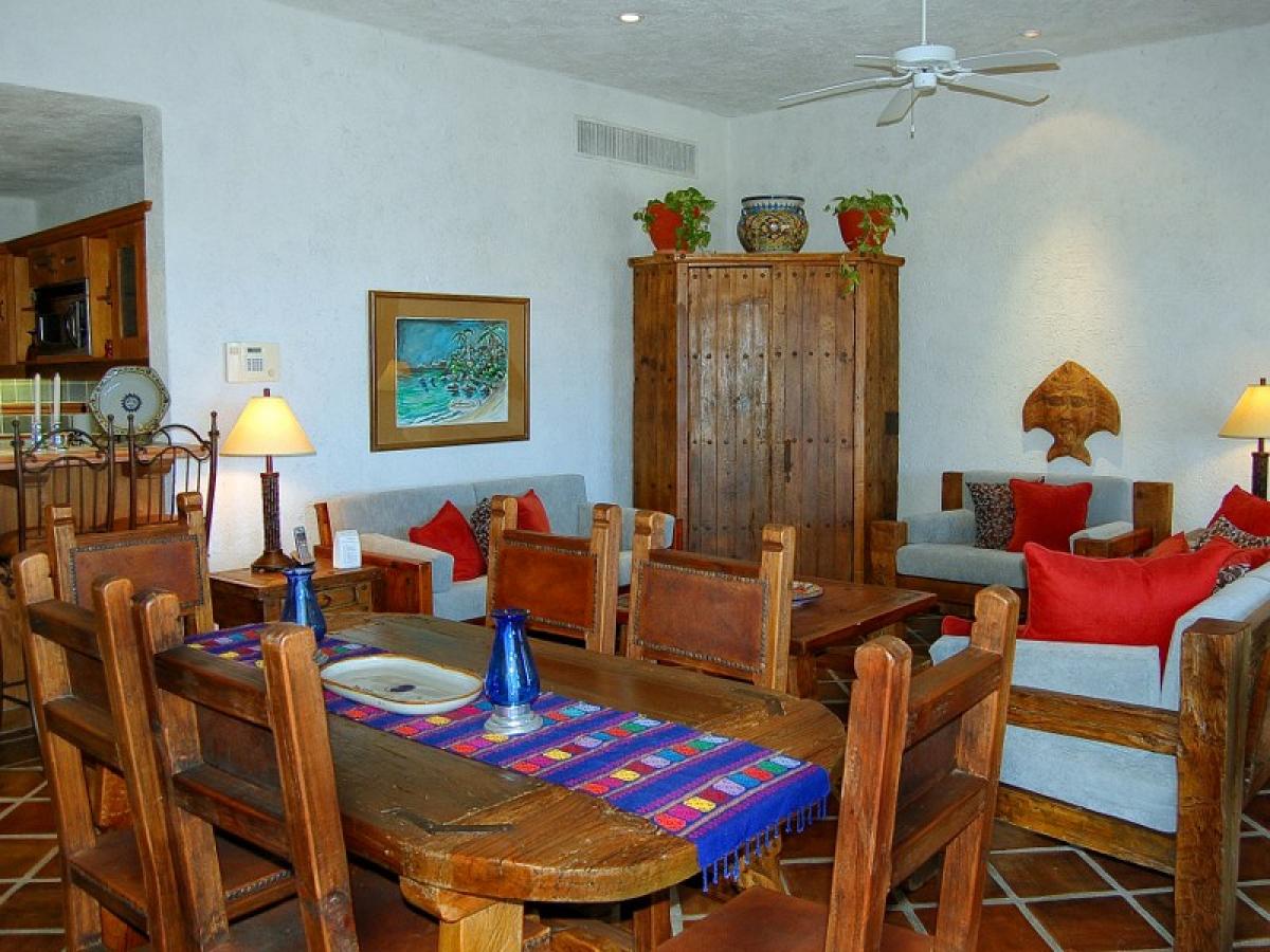 Luna Llena (House of the Full Moon) is a property whose special character is apparent at first glance. This gorgeous Mexican villa is located right off the 3rd fairway of Palmilla with a beautiful handcrafted stone walkway that winds down to the nearby beach. Inside Luna Llena guests will appreciate that there are two master suites (with balconies and a full kitchen) in the upper level, as well as three lower-level bedrooms (and full kitchen.) This smart arrangement allows for couples or families with children to each have their privacy. This 8,000 sq. ft. villa also has 5 bathrooms and a fully equipt kitchen. However with a palapa for shade, a large Jacuzzi for soothing, and those vibrant views of blues and greens outside, guests hardly spend time indoors! There are a variety of floats and water toys for the pool and there are two sea kayaks along with beach chairs and beach unbrellas to enjoy.