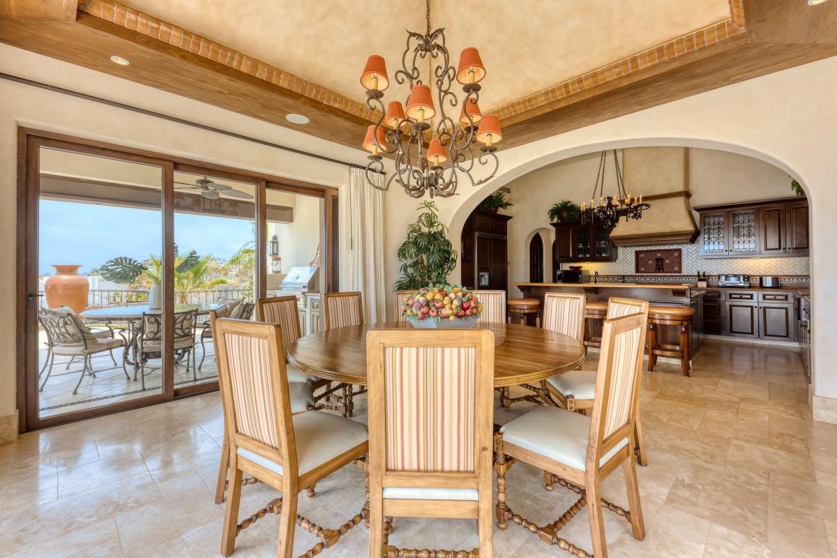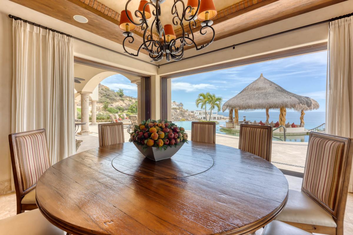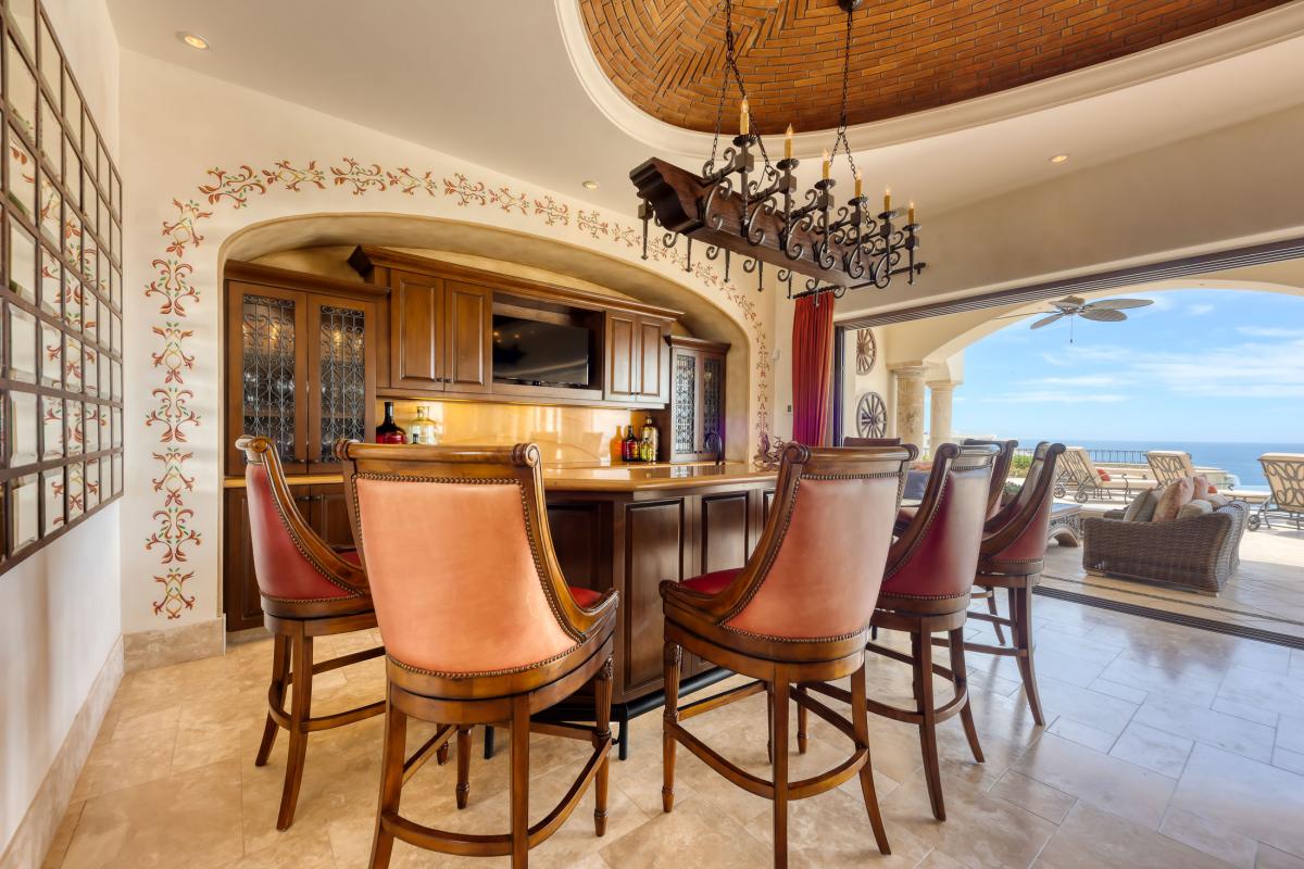 Villa Fondren continues to impress with its opulent interiors, including a spacious living room, a gourmet kitchen, and a dining area. This Los Cabos rental seamlessly blends indoor and outdoor living, with massive glass doors leading to the pool deck and private terraces with ocean views. Guests can also enjoy the amenities of the private Club Fundadores, which offers swimming, fitness, dining, and spa services. With nearly daily maid service and proximity to the resort lifestyle of Puerto Los Cabos, this villa promises an unforgettable Los Cabos vacation experience.