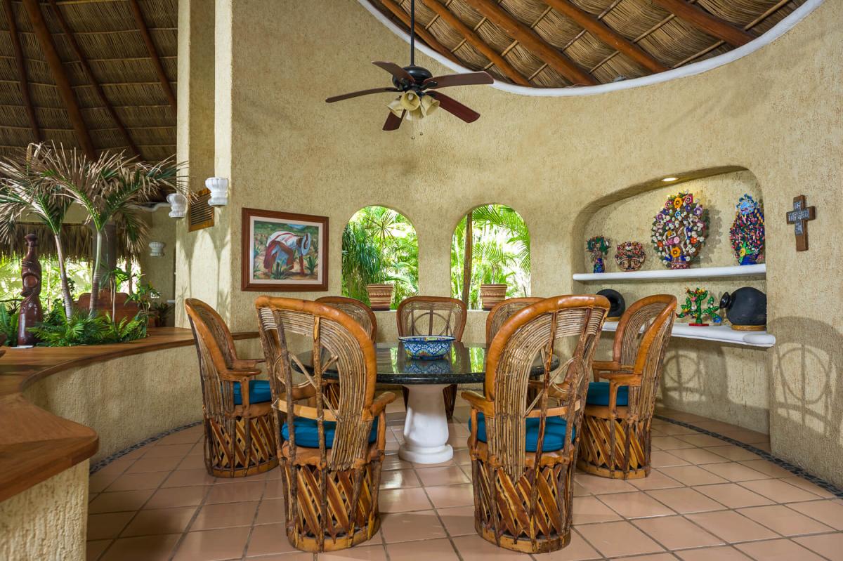 Villa Las Rocas is a seven-bedroom private beachfront villa located in Cabo San Lucas. This luxury Cabo San Lucas home features gorgeous lounge spaces sheltered by grand palapas, a fully-equipped ocean view wet bar, spectacular pool terrace and every comfort and amenity imaginable. Inside, the spacious open-concept living and dining areas sit under the shade of a massive palapa that opens right onto the pool terrace, letting in the cool ocean breezes and soothing sounds of waves washing against the shore.