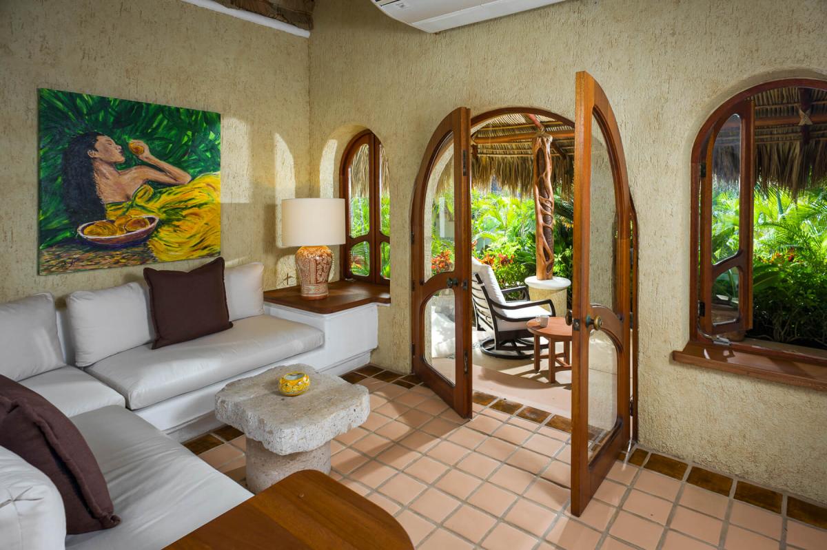 Swaying palms and a multitude of fruit trees surround the property, creating the ambiance of a lush tropical paradise hidden away from the world. At Villa Las Rocas, a bridge leads across the pool to a beachfront palapa lounge set right on the secluded sands of Playa El Tule.