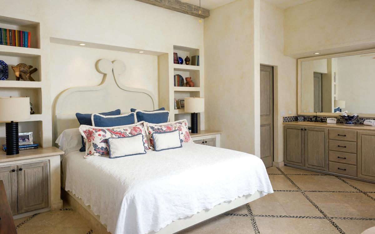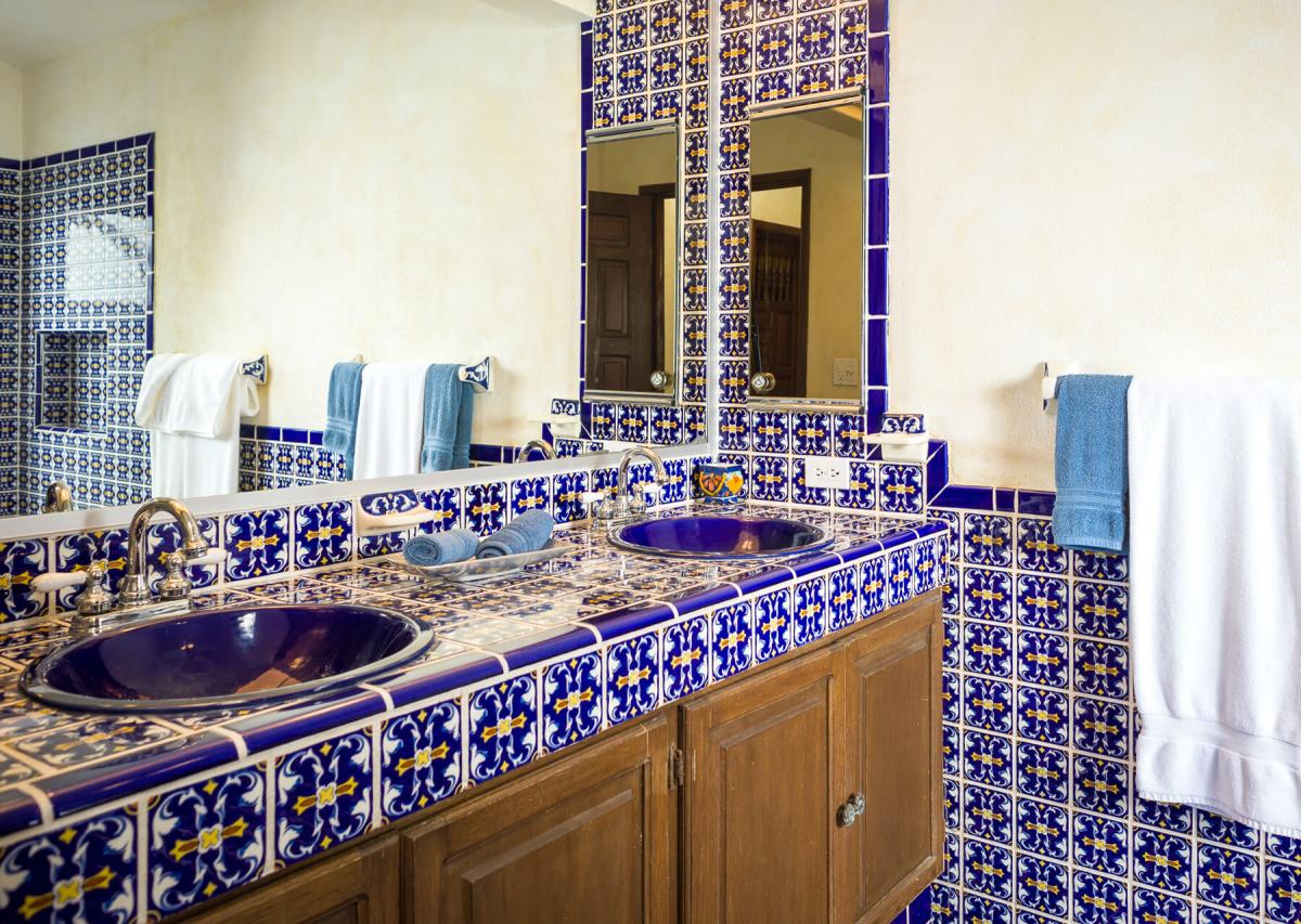 The bedrooms follow Villa Pacifica’s theme of bringing light in with warm accents. Each bathroom boasts unique Mexican tiles, like the tiles found in the kitchen.