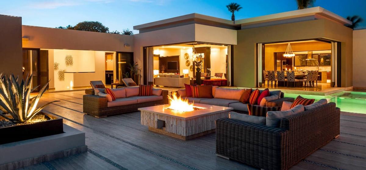 Outdoors, Villa Renata is a paradise of luxurious amenities and stunning design. The gourmet kitchen, fitted with Viking appliances and marble countertops, leads to an intimate dining area with views of the glistening sea. A floating walkway across the pool connects to a cozy outdoor lounge with a grand fireplace, perfect for evening cocktails. The rooftop terrace is a masterpiece, featuring fire pits, lounge beds, and a breathtaking infinity pool that extends to the home's edge. With its blend of natural beauty and architectural excellence, a Los Cabos vacation at Villa Renata offers an unparalleled escape where every detail is crafted for serenity and sophistication.