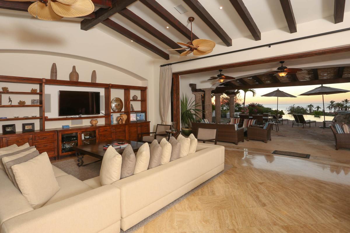 Villa Solarena boasts 5,500 square feet of interior living space with six fully furnished bedrooms. Four bedrooms are within the main house and all are equipped with king beds. The final two bedrooms are located in a private casita. The home has a cozy living space and TVs throughout for entertainment.