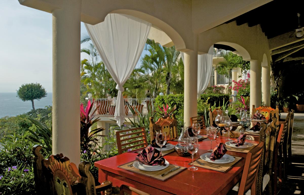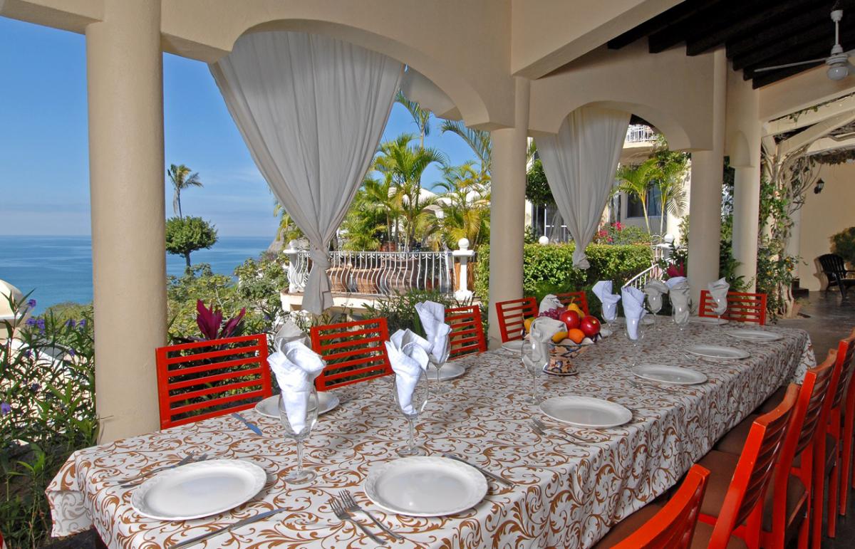 A spectacular 6 bedroom villa set on a quiet cul de sac in upper Conchas Chinas, Casa Aventura is within a short walk to the beach and only a 5 minutes drive from the charm and energy of downtown Puerto Vallarta. Casa Aventura is a multilevel 7000 sq. ft villa that has breathtaking views of the rugged jungle covered south coast including Los Arcos. Casa Aventura includes 3 separate living areas and with multiple terraces. There is space and privacy even for large groups. Casa Aventura is child friendly and welcomes events such as weddings and special celebrations. The main level has a large heated pool and a lower terrace has a large jacuzzi. Casa Aventura is decorated in a sophisticated contemporary style with splashes of color and Mexican artisania, surrounded by lush tropical flowering gardens.