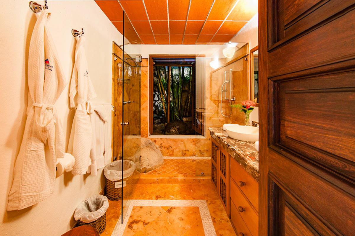 Included in the nightly rental of Casa Cosmos is your own private staff of four; cook, daily maid service, houseman, and groundskeeper. The villa has a spectacular 50 ft. long (lap size) natural rock grotto style swimming pool with a refreshing cool water jacuzzi and rock slide. Bottled water is provided in all bathrooms, and purified water is used for all food preparation. The living room features artisan crafted furniture, satellite television with VCR/DVD, and a stereo system with hidden area speakers and overhead fans throughout. The bedrooms are all air conditioned.